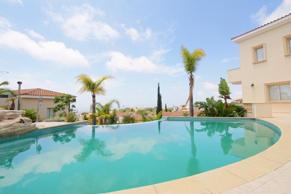 A luxurious 6-bedroom villa is located in the მშვიდ and sought-after area of Mesa Chorio, just a 5-minute drive from all essential amenities. This modern villa features a spacious open-plan layout, where the living room seamlessly connects with the dining area and kitchen, creating a bright and comfortable living space. The first floor offers stunning, unobstructed panoramic views of the coastline and the surrounding mountains. The property includes a guest bathroom, a separate kitchen, and easy access to the outdoor area, featuring a private swimming pool and a large garden—perfect for relaxation and entertaining. All bedrooms are generously sized and come with spacious balconies, offering even more spectacular views of the coast.