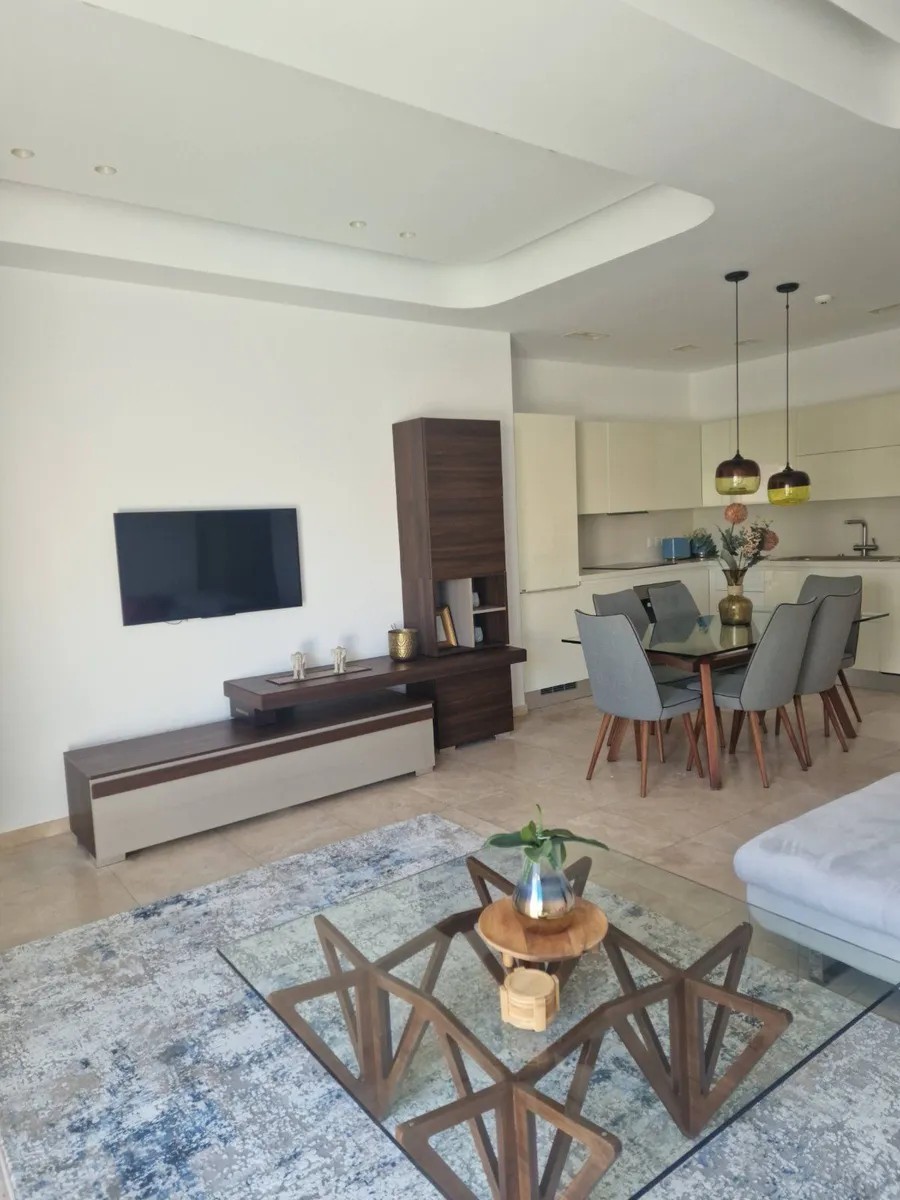 This modern and luxurious three bedroom apartment is available for rent in the Agios Tychonas tourist area, just 200 m. from the sea and close to some of Limassol’s well known luxury hotels.