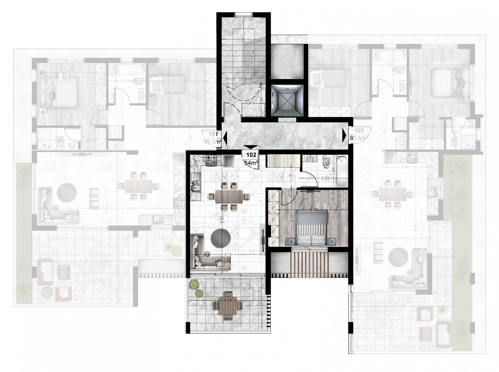 The apartment provides 55 sqm of internal living space, complemented by a private veranda of 13 sqm. The layout features an open plan living and kitchen area finished with high quality materials, clean lines and carefully designed lighting, creating a modern and comfortable living environment.