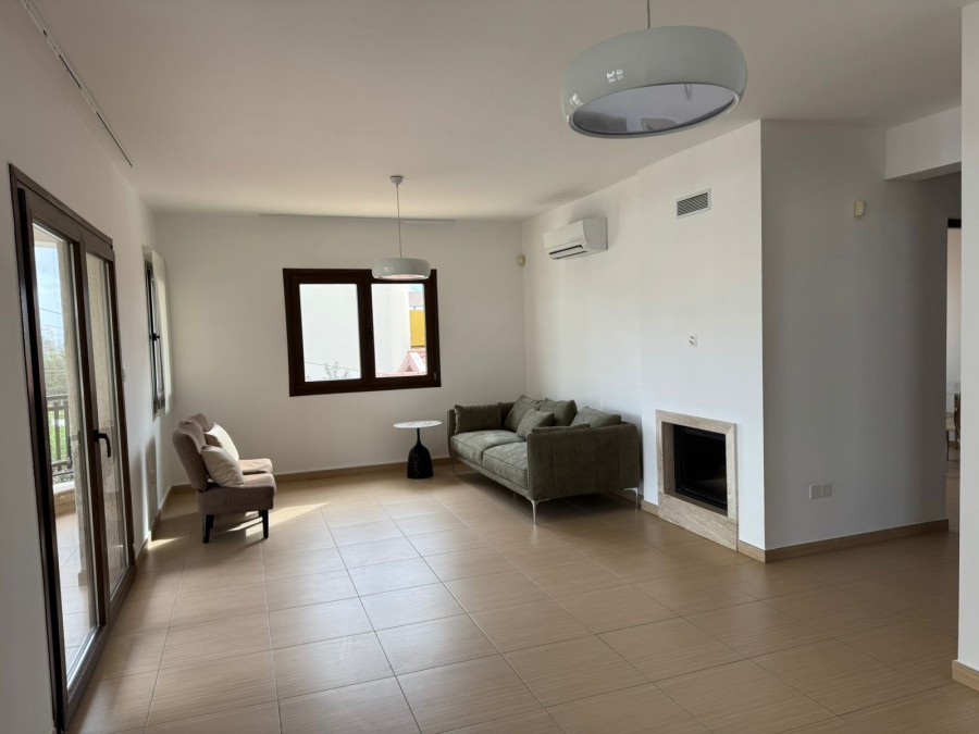 This upper house 3-bedroom apartment is available in a quiet residential area of Columbia, Germasogeia, offering generous space and a comfortable layout.