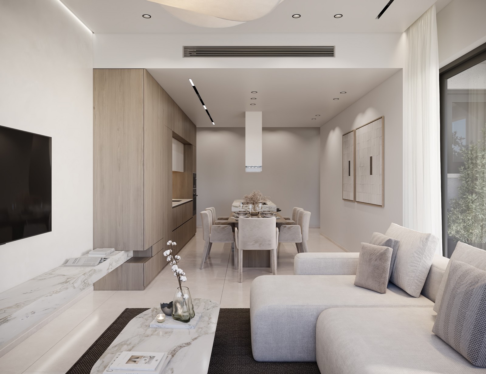 Modern and secure apartment building located in the popular coastal area of Agios Athanasios in Limassol. It offers a range of thoughtfully designed one-, two-, and three-bedroom apartments, as well as penthouses with private roof gardens. The homes are designed to feel bright and spacious, with open-plan layouts and large windows that let in plenty of natural light while showcasing the surrounding green views. Each apartment also includes its own private outdoor space, creating a comfortable and contemporary living environment in a central location.