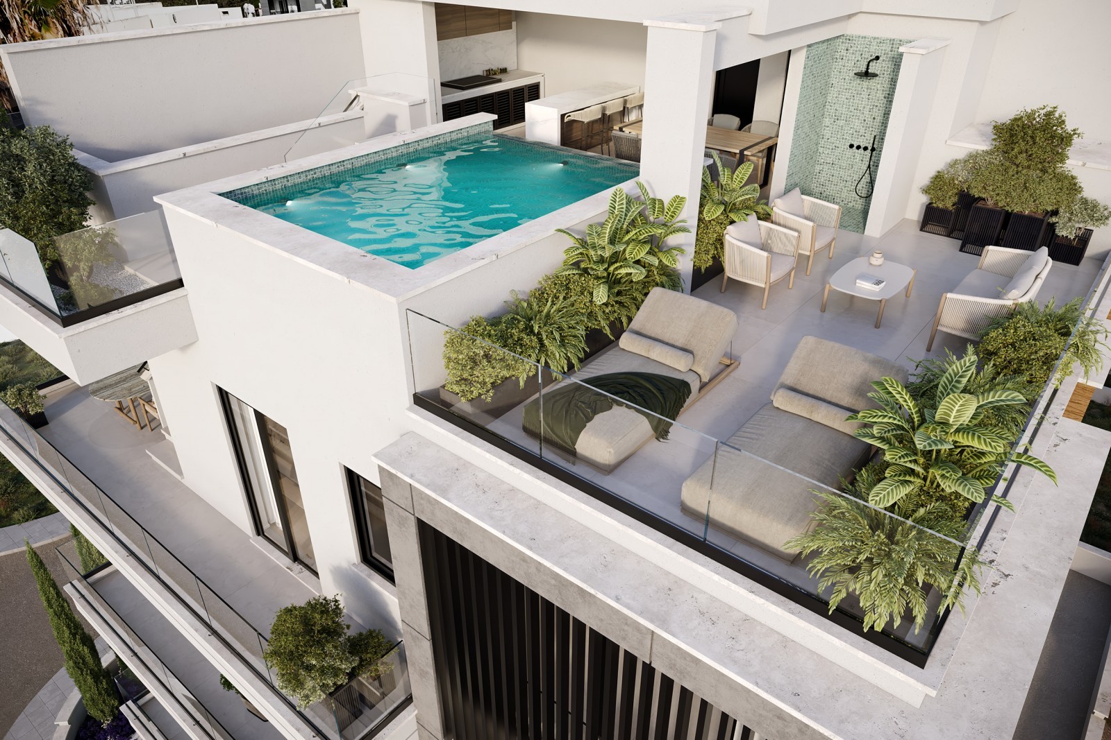 Modern and secure apartment building located in the popular coastal area of Agios Athanasios in Limassol. It offers a range of thoughtfully designed one-, two-, and three-bedroom apartments, as well as penthouses with private roof gardens. The homes are designed to feel bright and spacious, with open-plan layouts and large windows that let in plenty of natural light while showcasing the surrounding green views. Each apartment also includes its own private outdoor space, creating a comfortable and contemporary living environment in a central location.