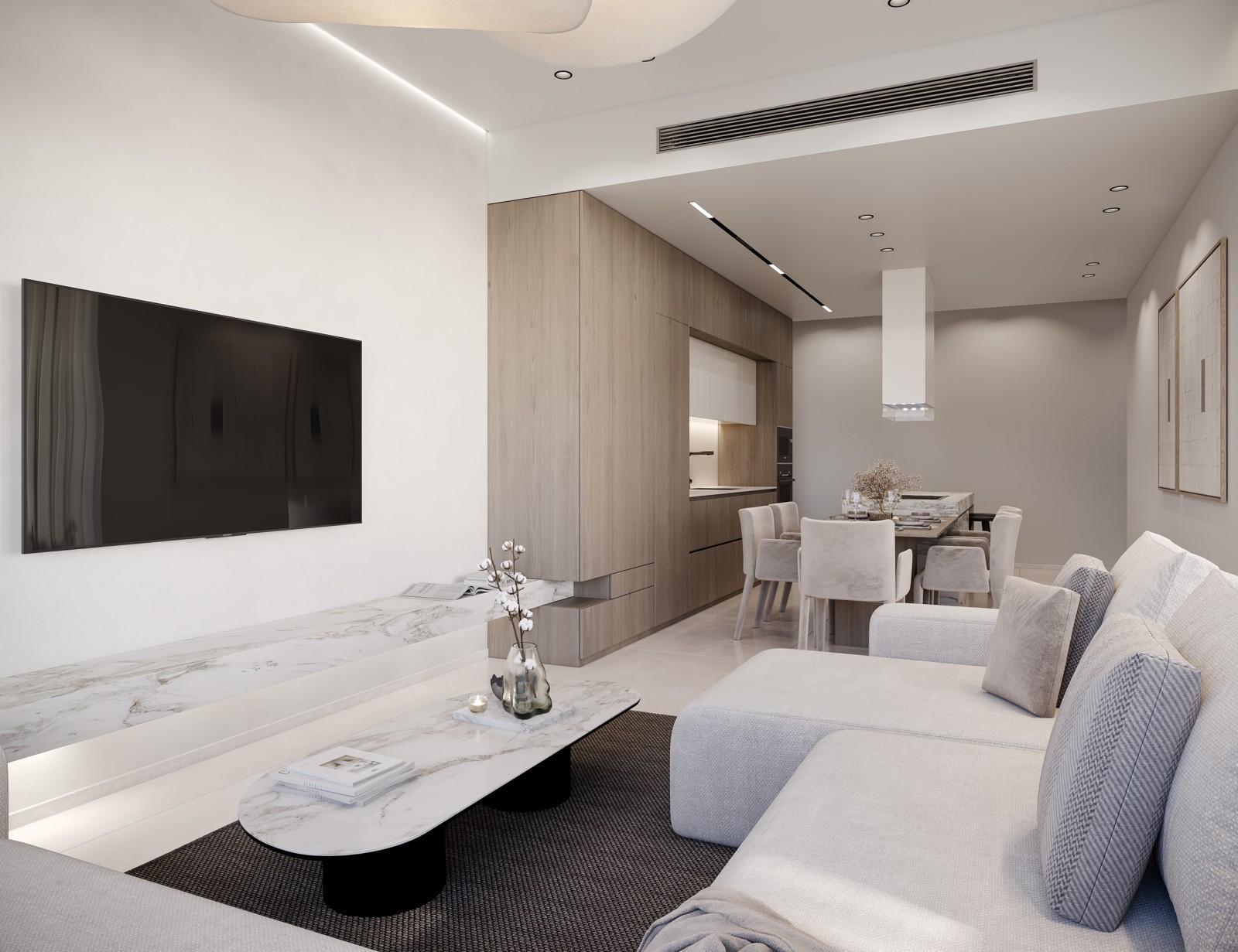 Modern and secure apartment building located in the popular coastal area of Agios Athanasios in Limassol. It offers a range of thoughtfully designed one-, two-, and three-bedroom apartments, as well as penthouses with private roof gardens. The homes are designed to feel bright and spacious, with open-plan layouts and large windows that let in plenty of natural light while showcasing the surrounding green views. Each apartment also includes its own private outdoor space, creating a comfortable and contemporary living environment in a central location.