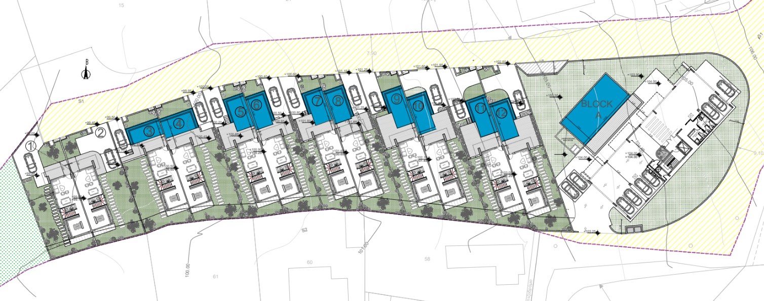 A gated community comprising of 12 2-storey, 3 bedroom houses and 8 - 2 bedroom apartments.