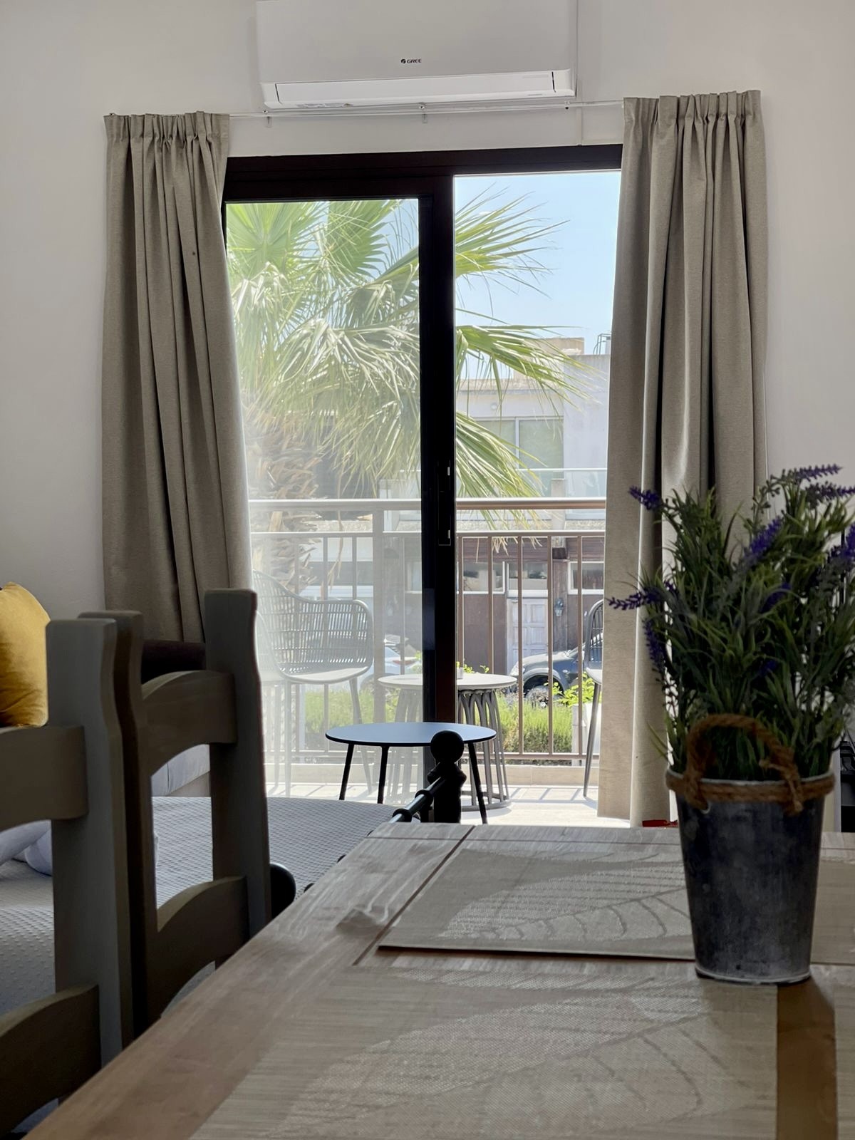 The studio features a comfortable open-plan layout with a fully equipped kitchen, creating a practical and inviting living space. With 37m² of covered area, it is ideal as a holiday home, rental investment, or a convenient base in Cyprus. The apartment comes fully furnished and is equipped with air conditioning, ensuring comfort throughout the year.