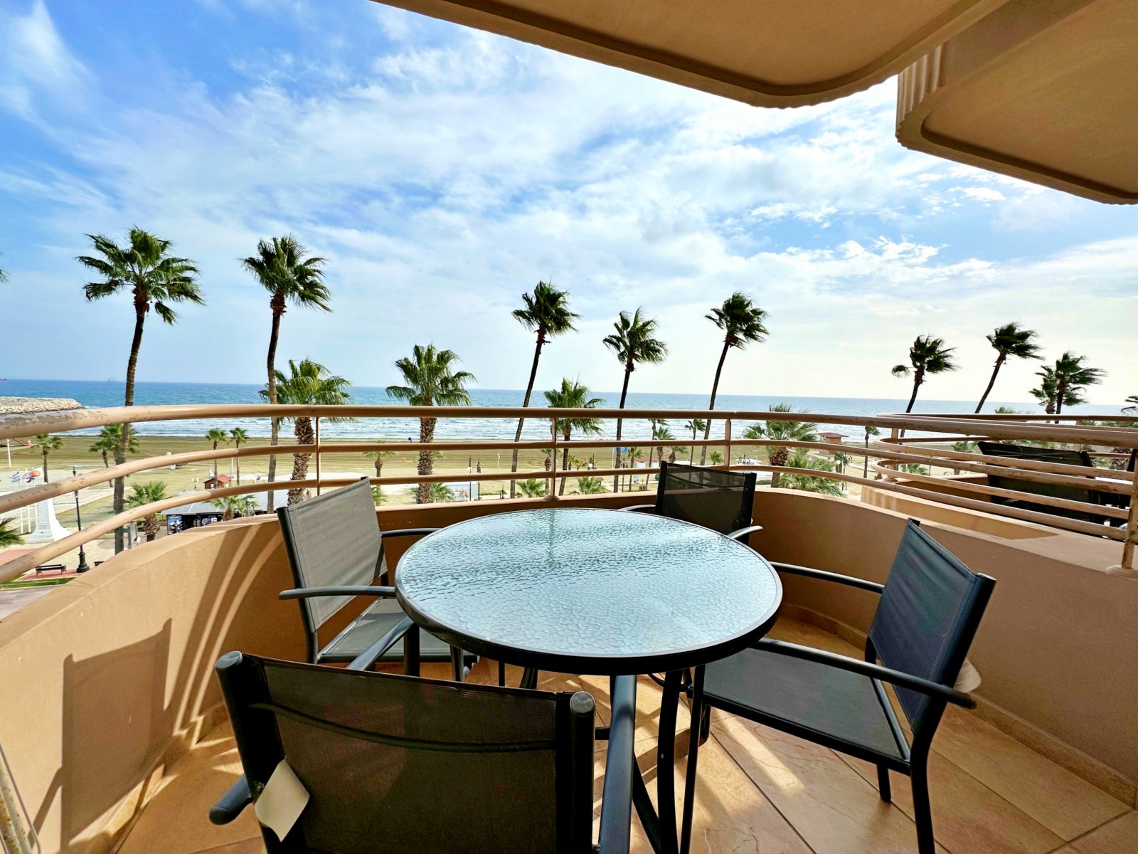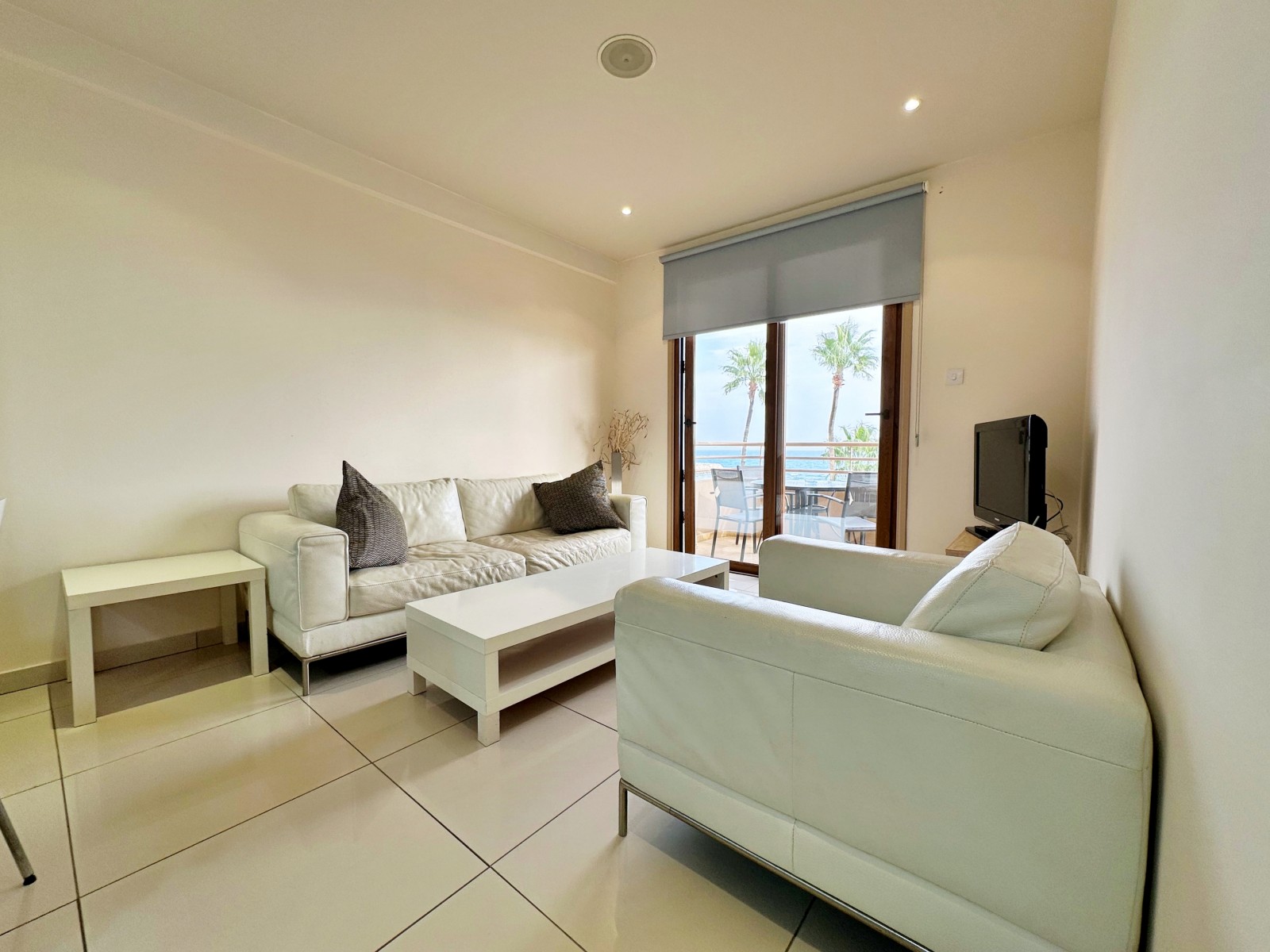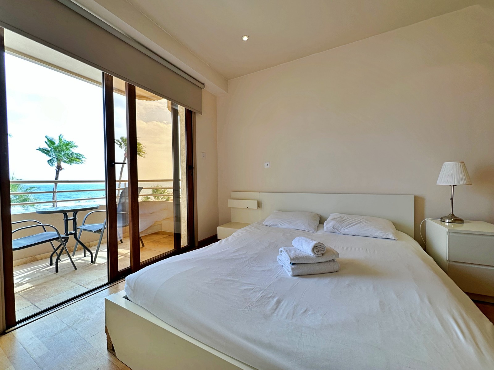 A truly unique opportunity to own a front-line 2-bedroom apartment in the very heart of Finikoudes, offering uninterrupted panoramic sea views. Positioned directly on Larnaca’s most iconic promenade, this exceptional property is within walking distance of the beach, renowned restaurants, cafés, and all amenities. The apartment features a bright open-plan living and sitting area that opens onto a balcony overlooking the Mediterranean, creating the perfect setting for relaxed seaside living. Both bedrooms are well proportioned, with the master bedroom enjoying breathtaking sea views from its own private balcony. An absolute gem in one of Cyprus’ most prestigious coastal locations.