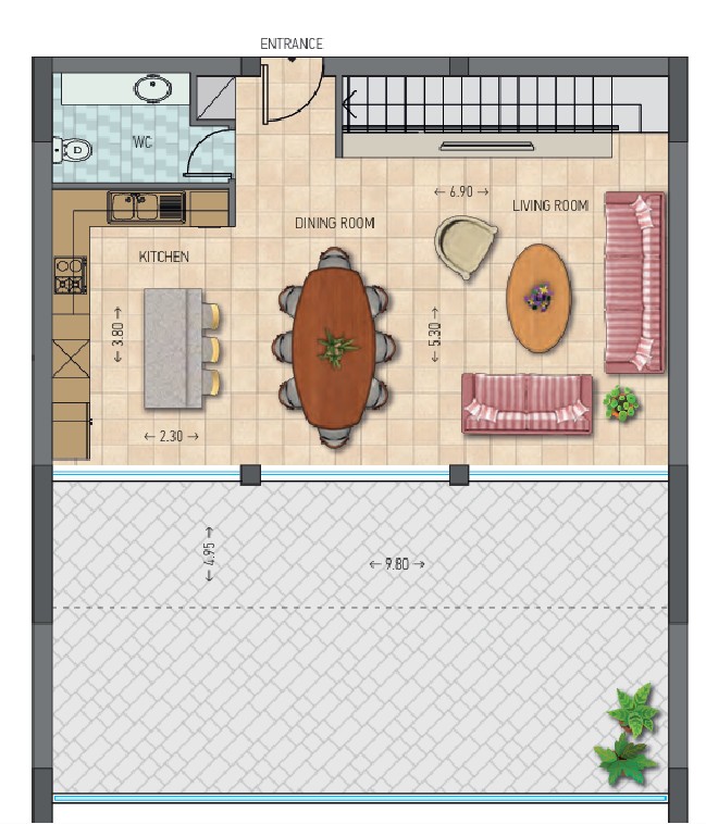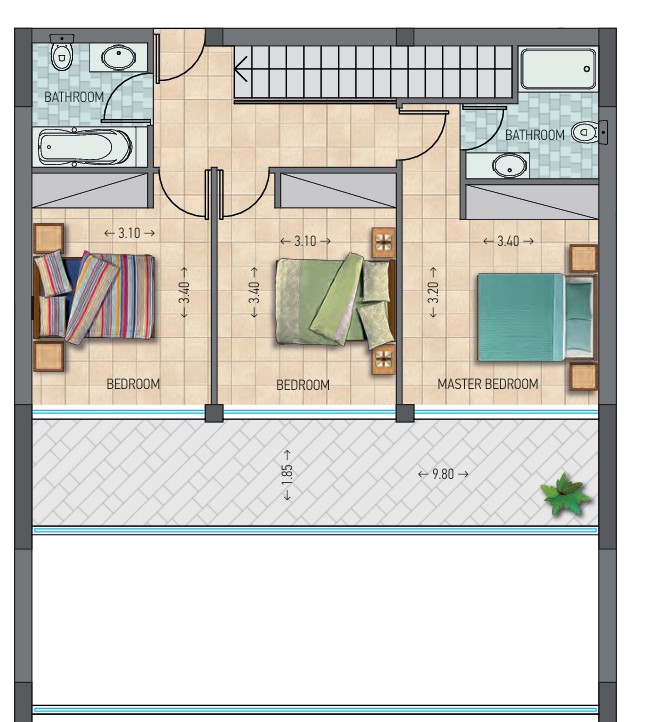 This unit is a Duplex apartment with covered veranda of 40sqm and uncovered veranda of 32sqm.