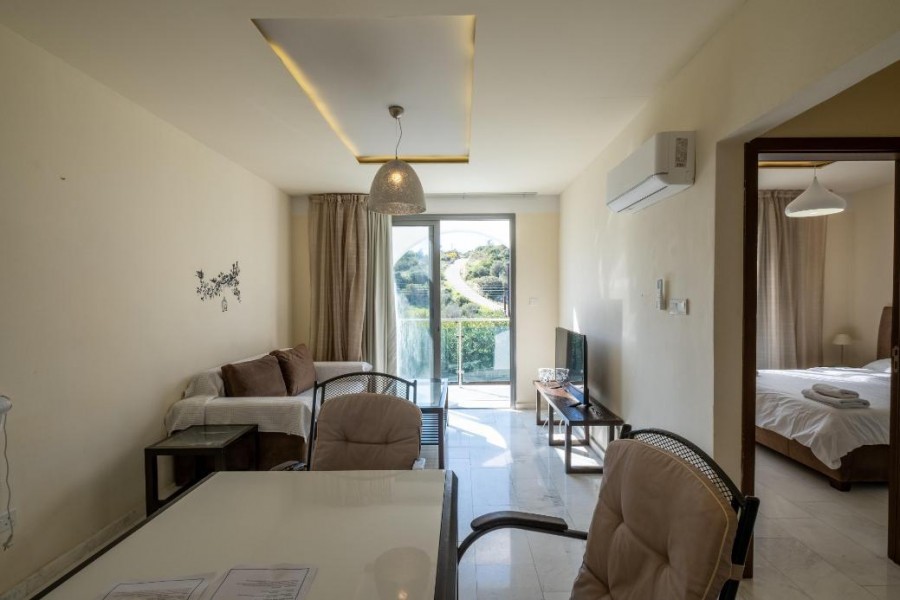 The property is a 1-bedroom apartment (F13) in Latchi. It is part of a resort comprising 59 apartments in total (studios, 1 bedroom and 2 bedroom apartments). The resort is located on the edge of the Akamas peninsula natural reserve. It is only a 3 minute drive to Latchi beach and just a short drive from Polis Chrysochous, Latchi harbour and historical attractions. The apartment has a covered area of 47sqm and uncovered verandas of 9sqm. It is situated on the upper floor of Block F. It consists of an open plan area with kitchenette, sitting area, one bedroom and a bathroom with toilet. The resort currently features an outdoor swimming pool with bar, an indoor saltwater pool and a sauna with indoor pool. The property is a unique opportunity to acquire your investment or holiday apartment by the sea. The apartment does not have a separate title deed. Sale to be effected through a Sales and Purchase agreement which will be deposited at the LRO.