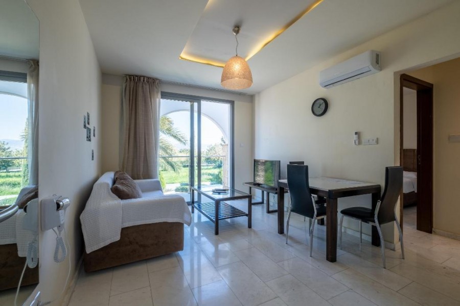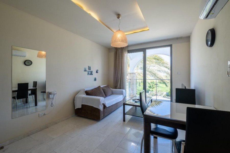 The property is a 1-bedroom apartment (F15) in Latchi. It is part of a resort comprising 59 apartments in total (studios, 1 bedroom and 2 bedroom apartments). The resort is located on the edge of the Akamas peninsula natural reserve. It is only a 3 minute drive to Latchi beach and just a short drive from Polis Chrysochous, Latchi harbour and historical attractions. The apartment has a covered area of 45sqm and uncovered verandas of 9sqm. It is situated on the upper floor of Block F. It consists of an open plan area with kitchenette, sitting area, one bedroom and a bathroom with toilet. The property enjoys sea views. The resort currently features an outdoor swimming pool with bar, an indoor saltwater pool and a sauna with indoor pool. The property is a unique opportunity to acquire your investment or holiday apartment by the sea. The apartment does not have a separate title deed. Sale to be effected through a Sales and Purchase agreement which will be deposited at the LRO.