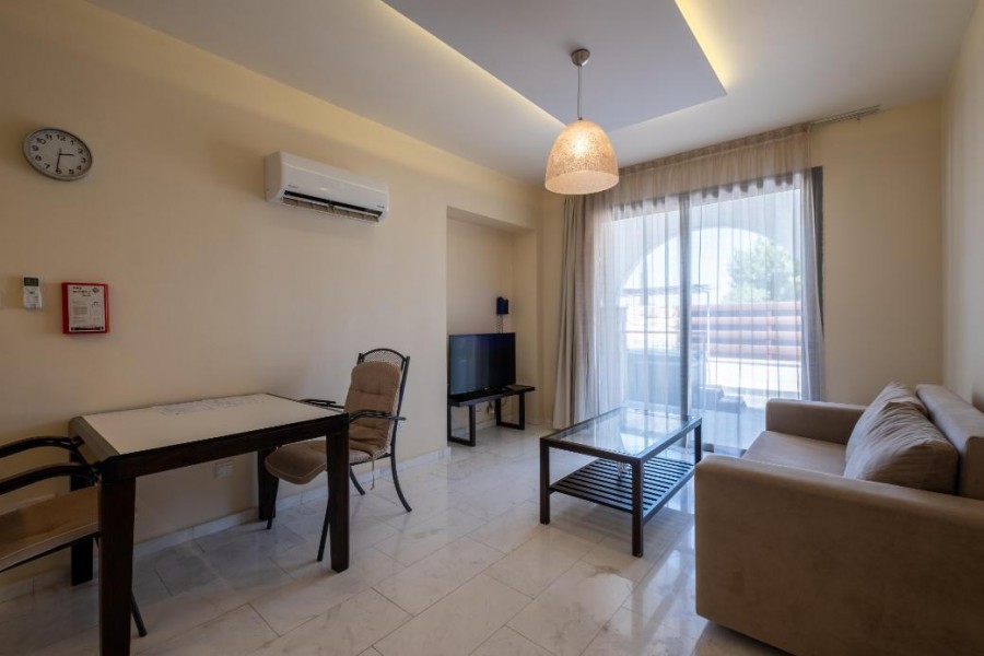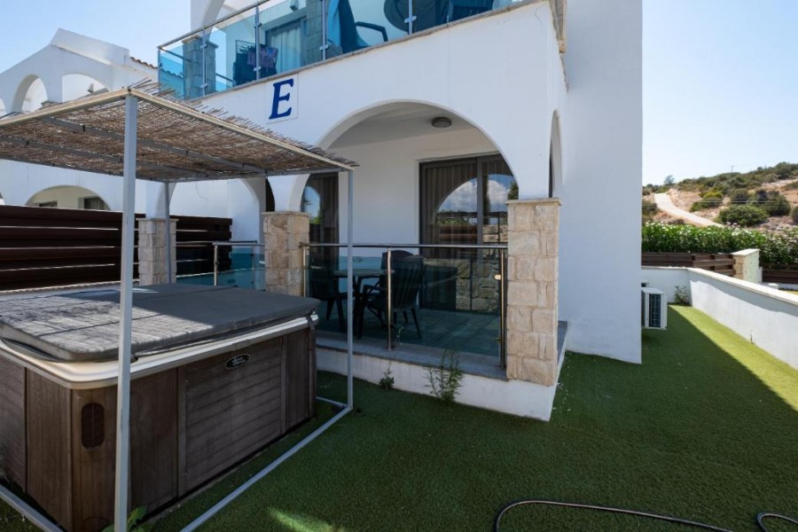 The property is a 1-bedroom apartment (E04) in Latchi. It is part of a resort comprising 59 apartments in total (studios, 1 bedroom and 2 bedroom apartments). The resort is located on the edge of the Akamas peninsula natural reserve. It is only a 3 minute drive to Latchi beach and just a short drive from Polis Chrysochous, Latchi harbour and historical attractions. The apartment has a covered area of 47sqm and covered verandas of 9sqm. It is situated on the ground floor of Block E. It consists of an open plan area with kitchenette, sitting area, one bedroom and a bathroom with toilet. The property also enjoys a private garden and an external jacuzzi. The property currently features an outdoor swimming pool with bar, an indoor saltwater pool and a sauna with indoor pool. The property is a unique opportunity to acquire your investment or holiday apartment by the sea. The apartment does not have a separate title deed. Sale to be effected through a Sales and Purchase agreement which will be deposited at the LRO.