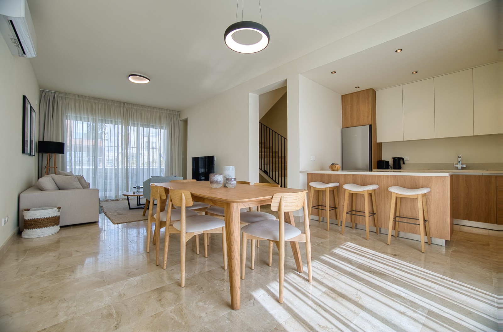 Stunning, brand-new villa available for rent in Emba, offering a peaceful setting with modern conveniences. This beautifully designed villa features 3 spacious bedrooms and 2.5 bathrooms, ideal for families or those seeking extra space. The villa has been thoughtfully built with quality finishes, creating a bright, open, and welcoming atmosphere throughout. Fully equipped with new appliances throughout, and each room is fitted with air conditioning, ensuring year-round comfort. Enjoy the privacy of a personal pool, dedicated outdoor space, and private uncovered parking. Located in a secure, gated complex built in 2024, the community offers a clubhouse, a large communal pool for adults and children, and a family-friendly environment. This brand-new villa in Emba offers both privacy and community amenities, making it an ideal residence for those looking for a modern, comfortable lifestyle.