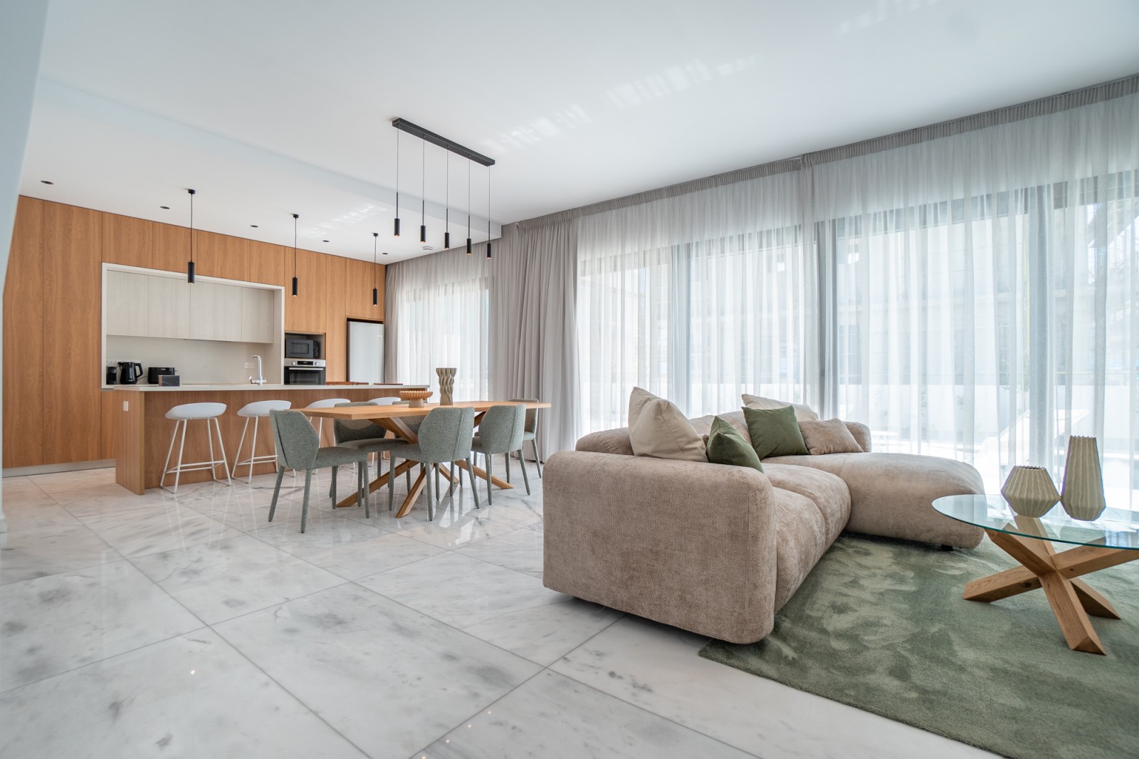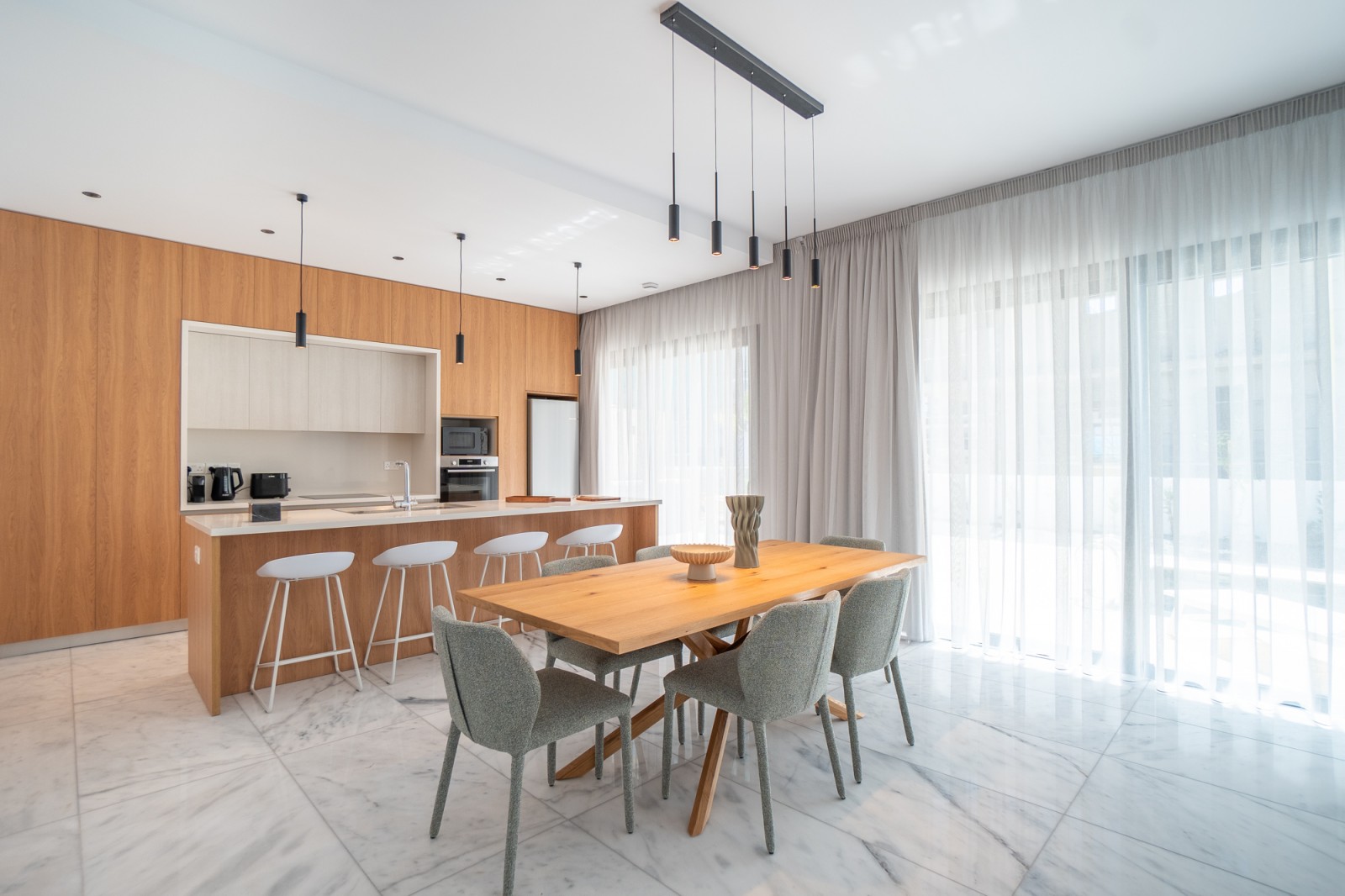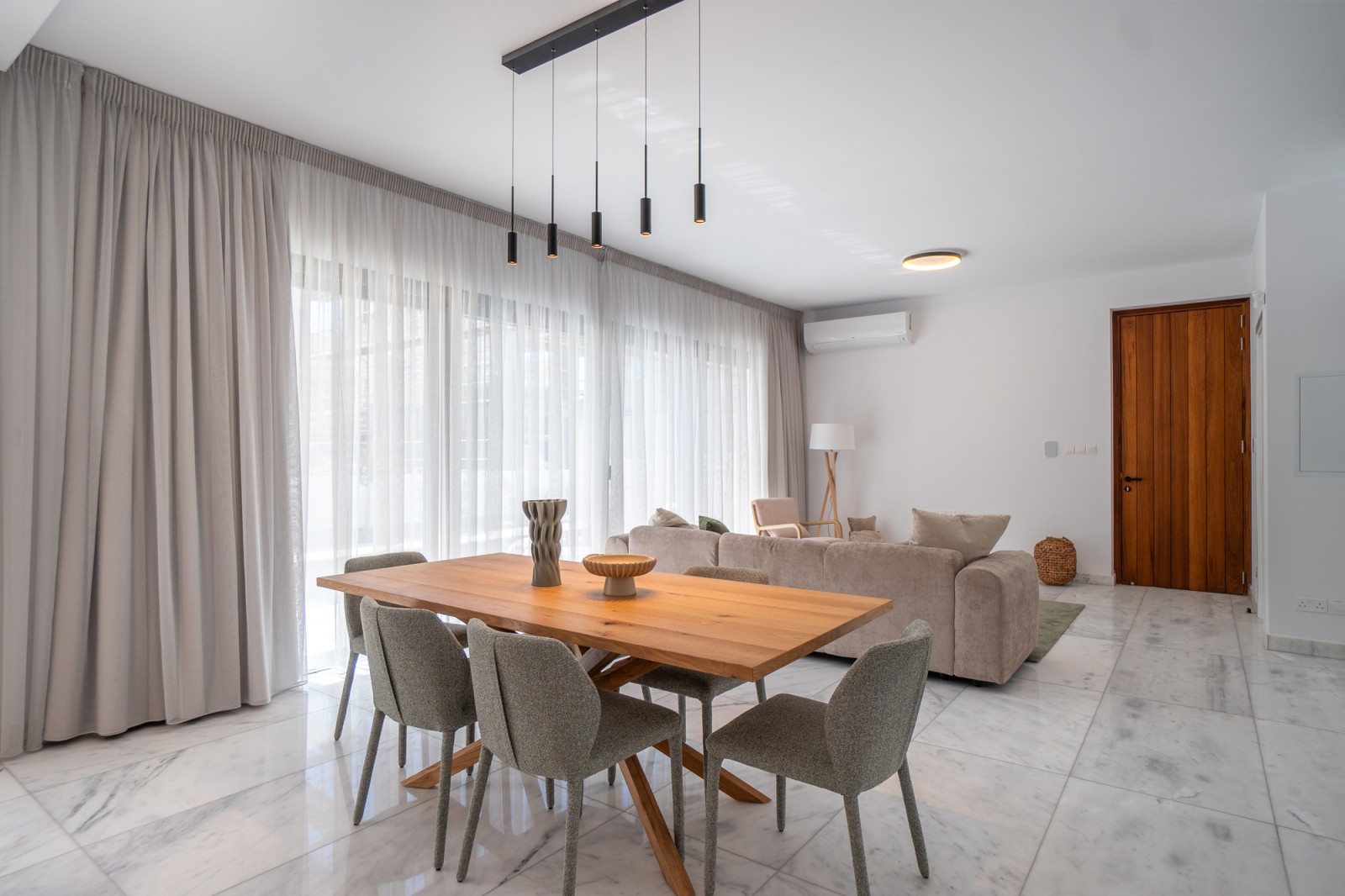 A fully furnished, brand-new 3-bedroom, 2-bathroom villa located in a newly built complex in Kato Paphos is now available for immediate rent. This modern home offers a spacious and comfortable living environment, featuring a fully equipped kitchen with all essential appliances, as well as a dryer and washing machine for added convenience. The villa is designed with high-quality finishes, including double-glazed windows for excellent noise insulation, electric curtain systems in all rooms, shutters, and underfloor heating throughout.