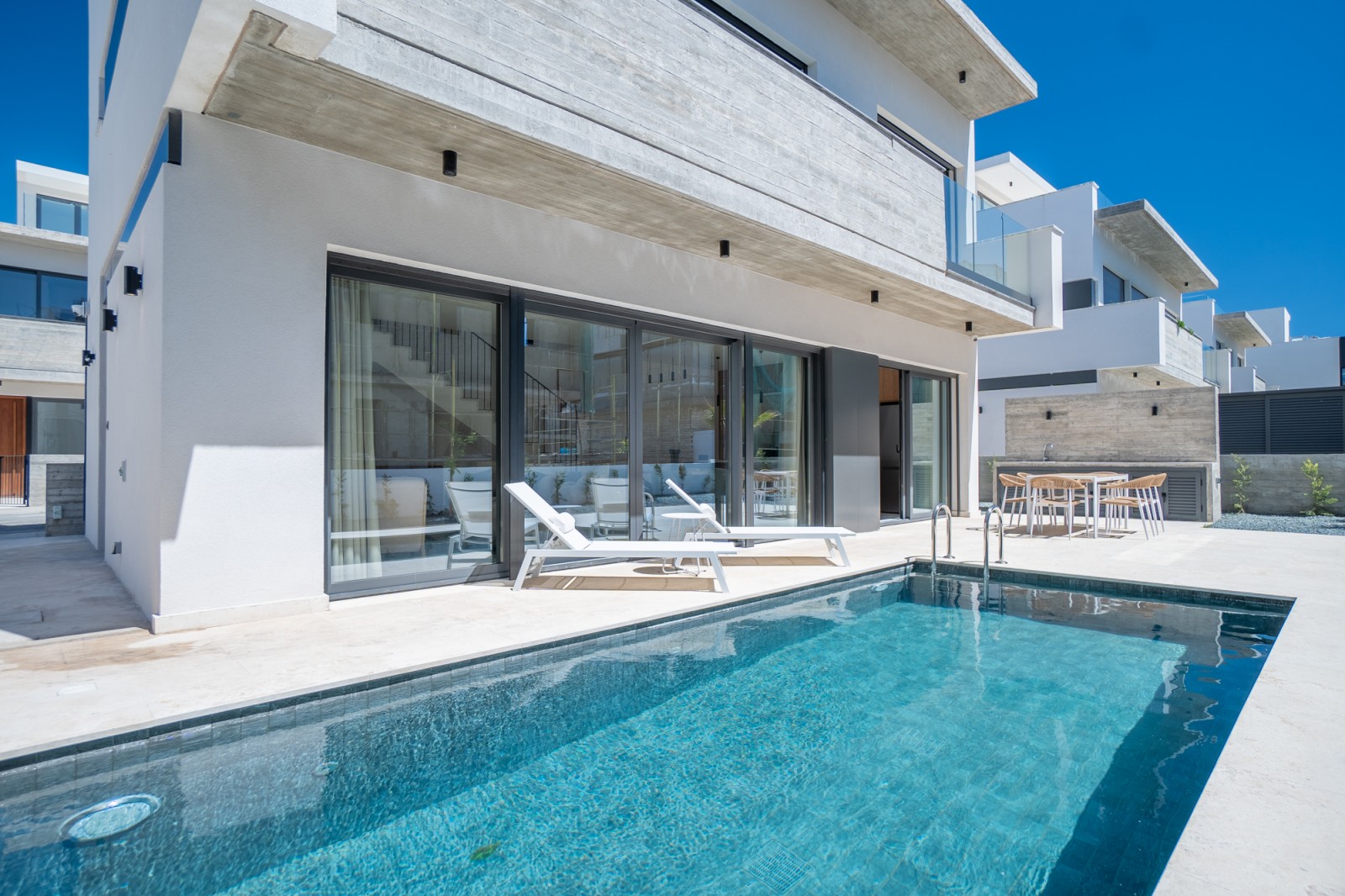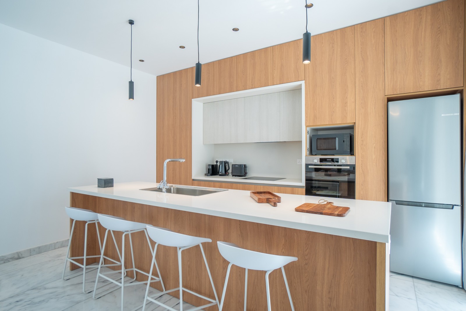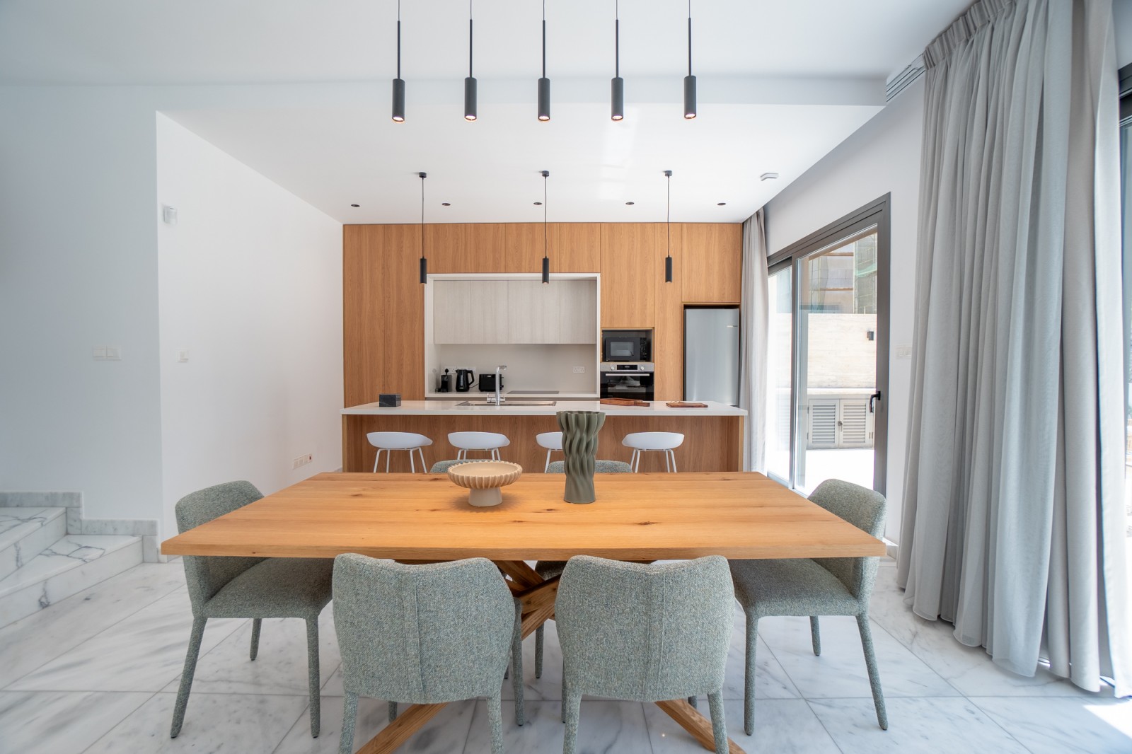 A fully furnished, brand-new 3-bedroom, 2-bathroom villa located in a newly built complex in Kato Paphos is now available for immediate rent. This modern home offers a spacious and comfortable living environment, featuring a fully equipped kitchen with all essential appliances, as well as a dryer and washing machine for added convenience. The villa is designed with high-quality finishes, including double-glazed windows for excellent noise insulation, electric curtain systems in all rooms, shutters, and underfloor heating throughout.