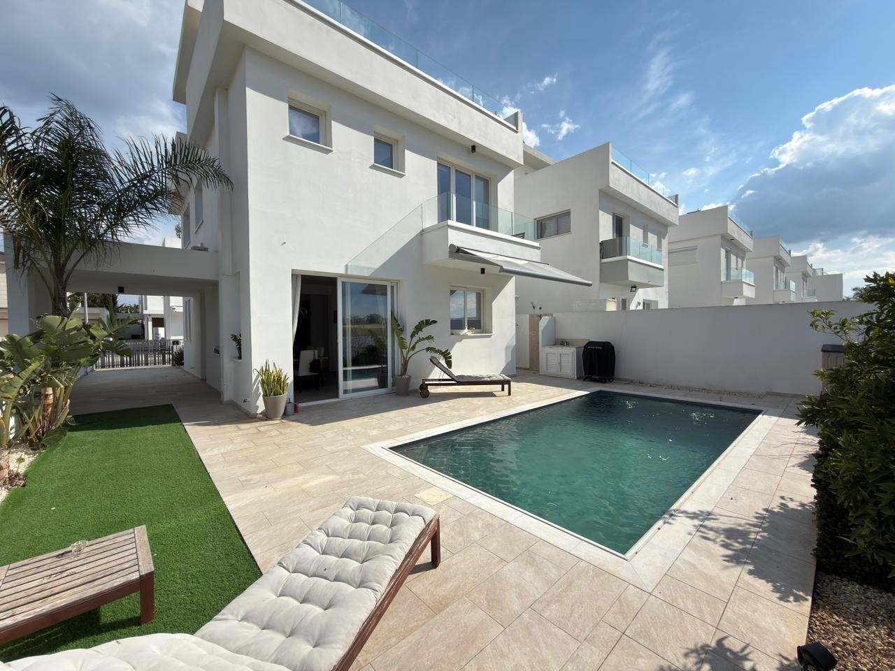 This stunning 4+1 bedroom villa in the sought-after Livadia area offers the perfect blend of comfort, privacy, and convenience. Located in a quiet, family-friendly complex, the property is just 5 minutes from the beach and close to all essential amenities. The villa is newly built and fully furnished with modern finishes, featuring spacious living areas, a roof garden ideal for relaxing or entertaining, a private swimming pool, and private parking. Additional benefits include a storage room and thoughtfully designed pet-friendly access with dedicated doors, making it an excellent choice for families with pets seeking a high-quality living environment.