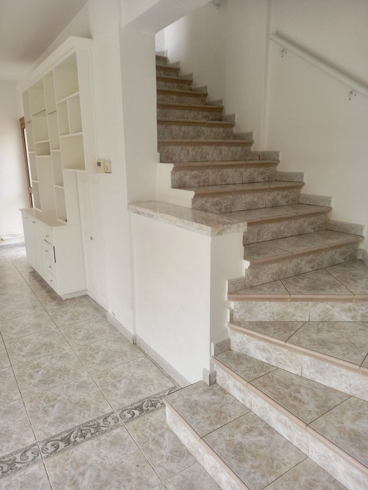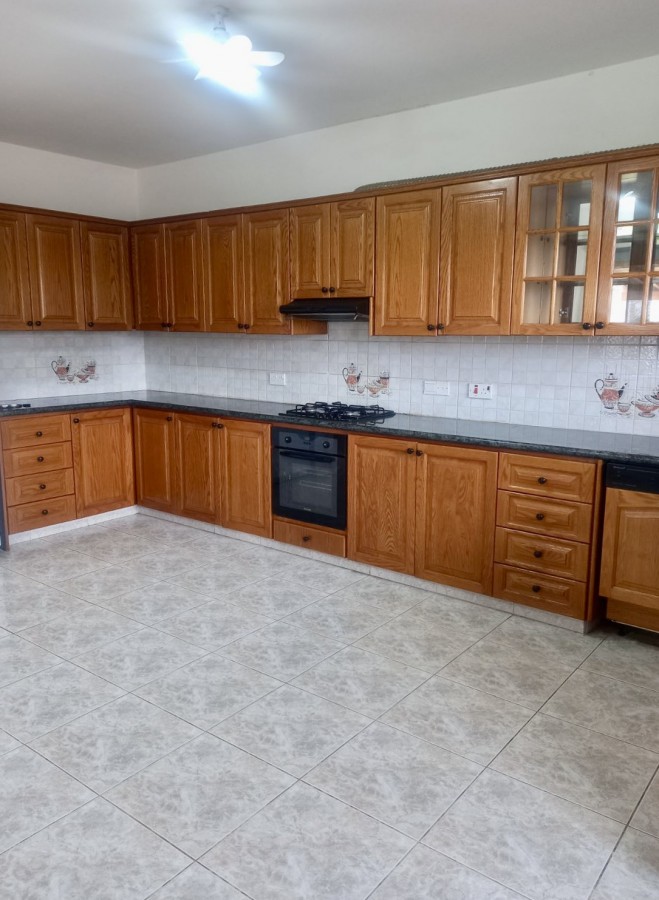 This spacious 4-bedroom villa offers comfortable family living with excellent indoor and outdoor features, ideal for larger households or pet owners. The property features a large fully fitted kitchen with ample storage and workspace, as well as an additional kitchenette for extra convenience, making it perfect for extended family living or entertaining. Inside, there is a generous living room with a fireplace, creating a warm and inviting atmosphere, along with a separate dining area ideal for family meals and gatherings. Patio doors allow plenty of natural light to flow throughout the home while providing access to the outdoor areas. The villa includes four well-sized bedrooms, all with good natural light and fitted storage, along with one main family bathroom and three separate shower rooms, offering practicality for larger households. Additional comforts include full air conditioning throughout, central heating, and a fireplace, ensuring year-round comfort. Externally, the property benefits from a garage and designated areas with dog cages, making it especially suitable for pet owners. Small dogs and cats are permitted. Conveniently located close to local shops, supermarkets, cafés, restaurants, schools, and bus routes, the property provides easy access to surrounding areas. The villa is offered partly furnished, with electricity and water to be transferred into the tenant’s name. Terms include one month’s deposit and one month’s rent in advance.