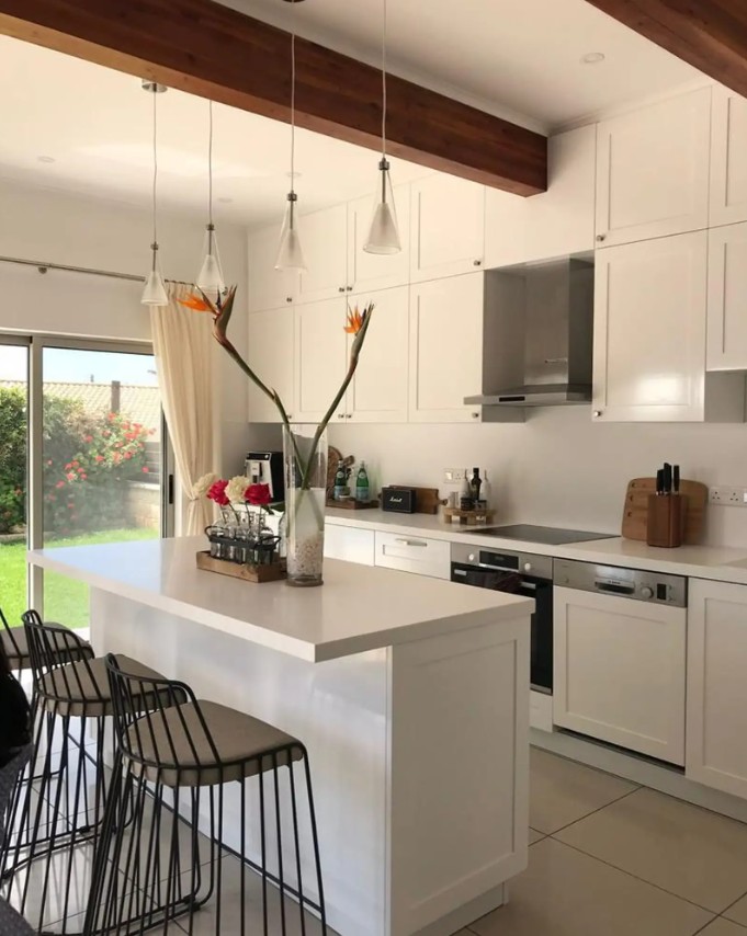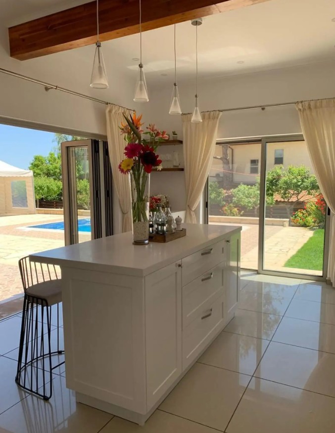 Modern country house with a bright, light, and airy interior, featuring a natural sandstone fireplace and modern chandeliers. The layout offers a comfortable indoor–outdoor living experience. The house is fully furnished and includes 3 spacious bedrooms and 3 bathrooms, fibre-optic internet, storage room, private swimming pool, and two external electric gates. A pergola with an outdoor kitchen and laundry area provides a pleasant space to enjoy the garden and outdoor living.