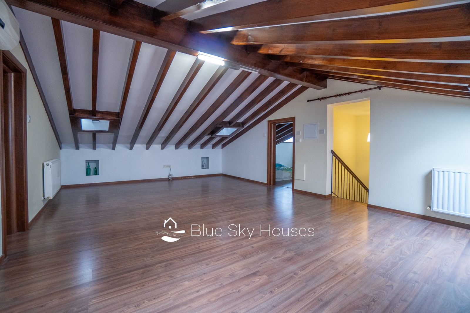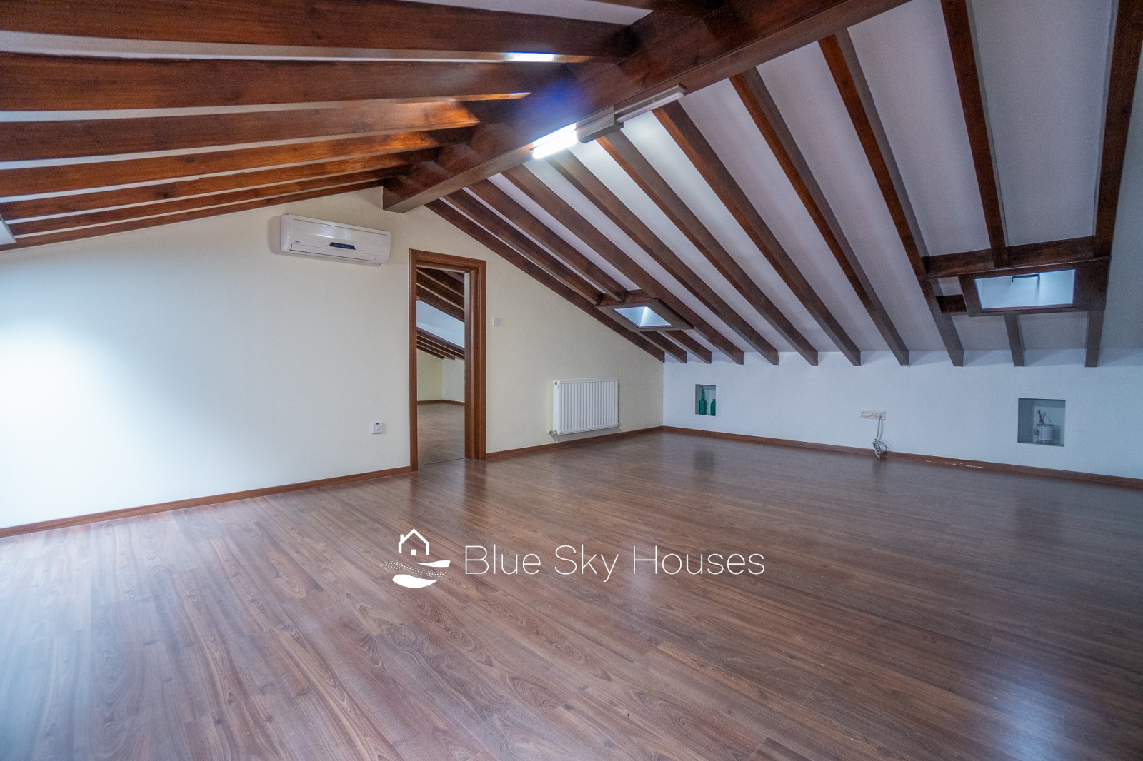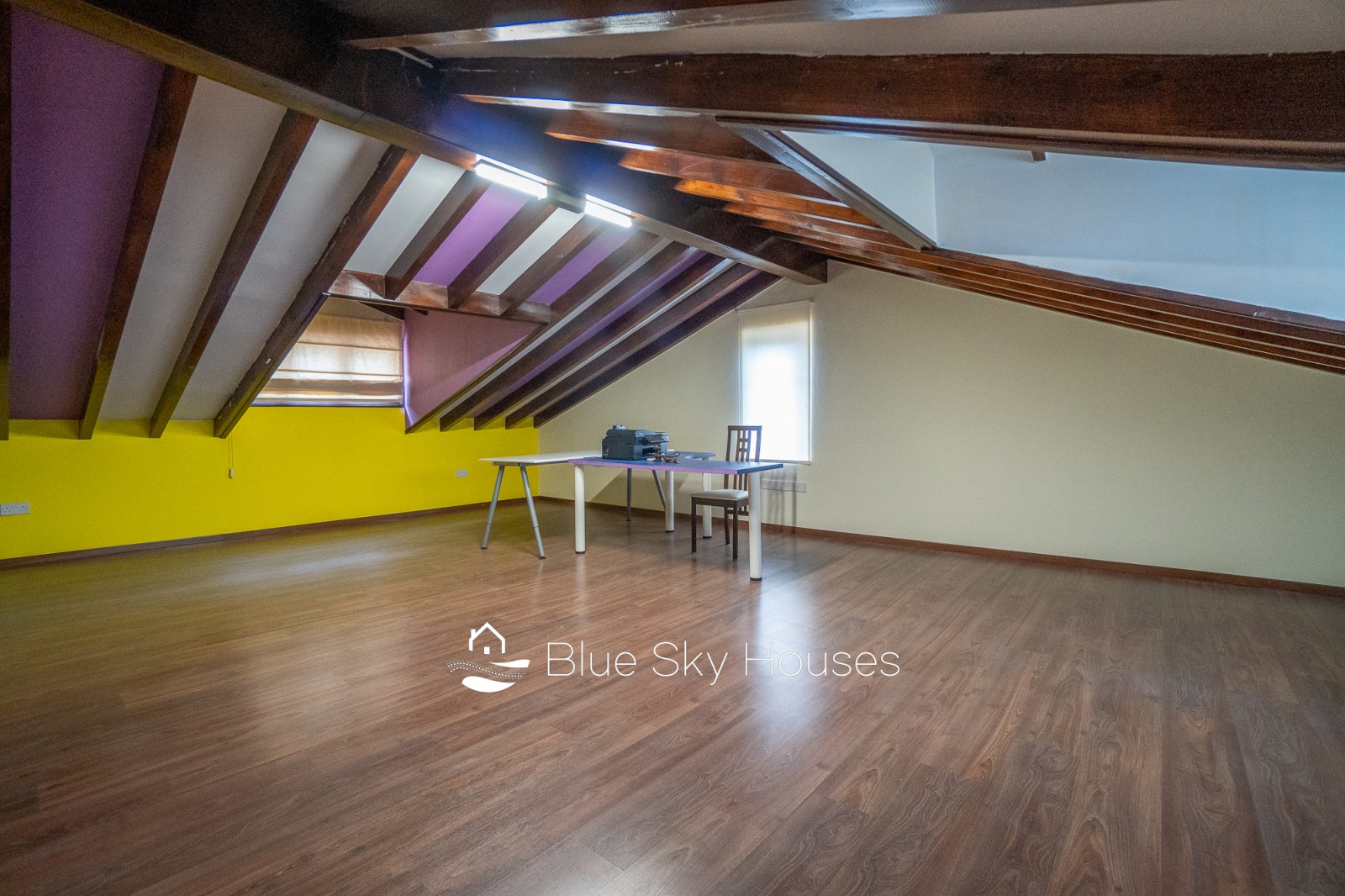 Above, the house offers an attic with several separate spaces and rooms, suitable for storage, a yoga area, playroom, art studio or any other use depending on the tenant’s needs.