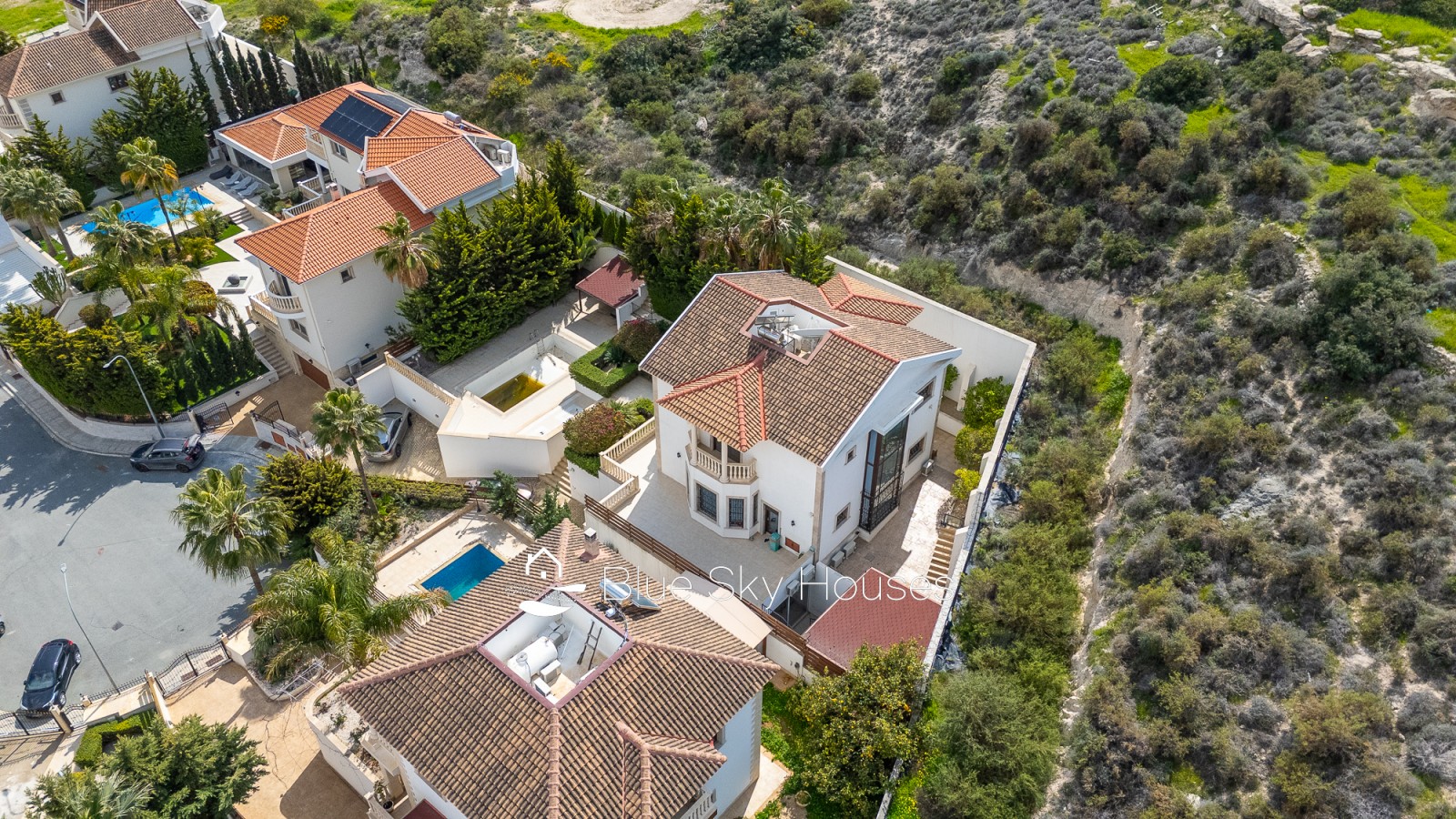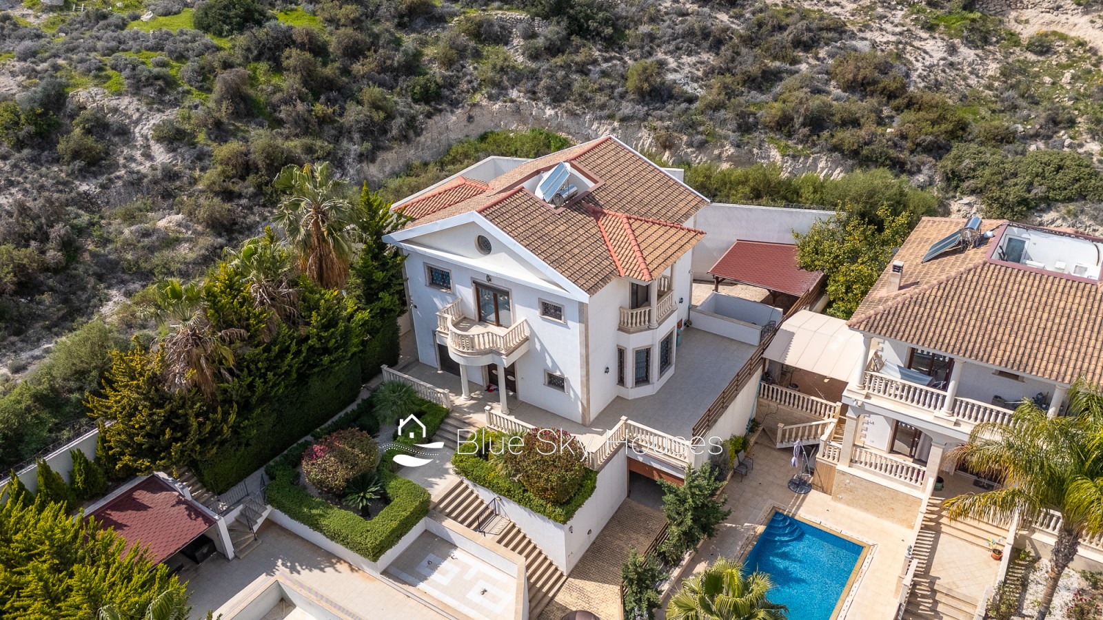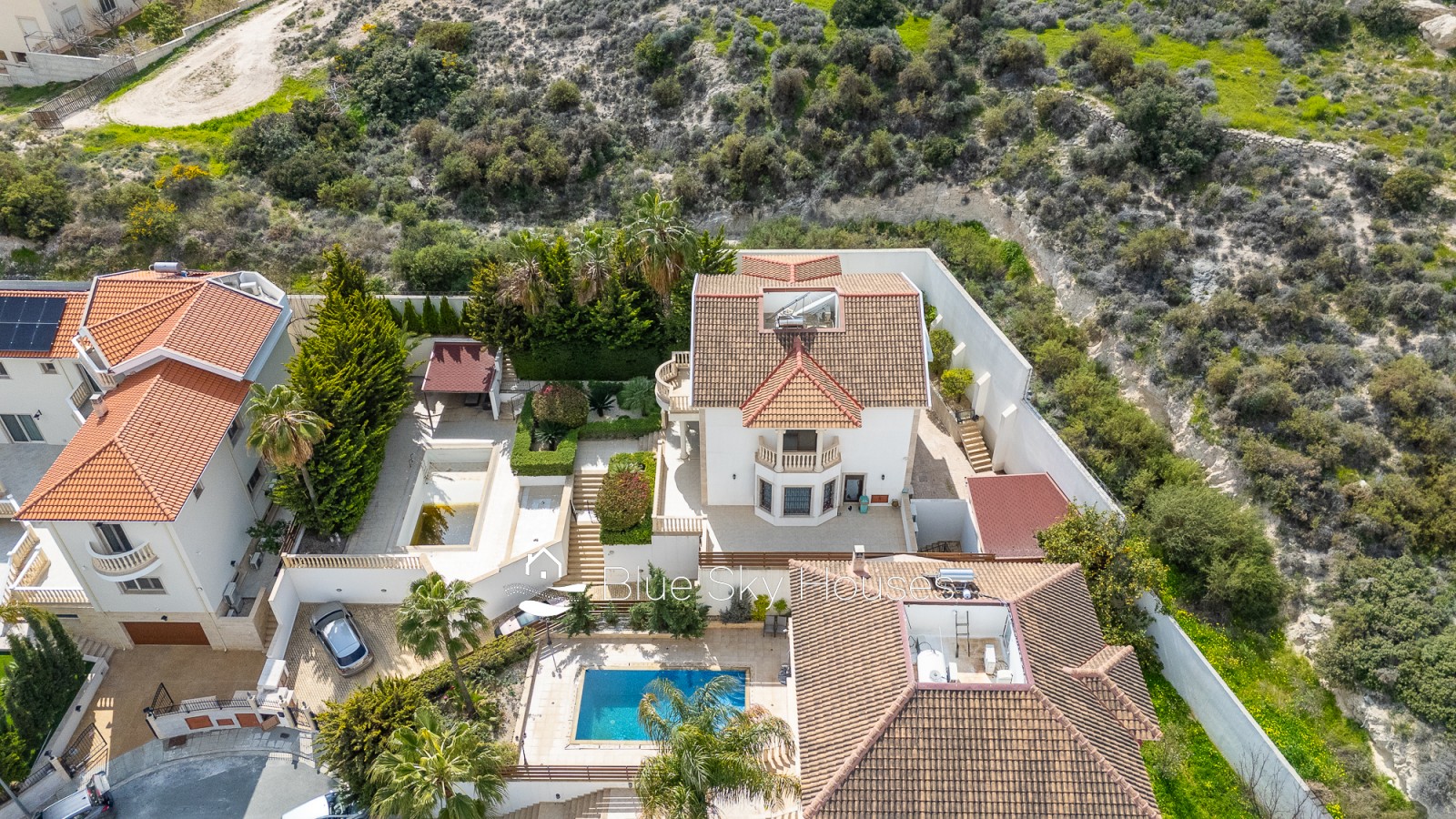 This refined five-bedroom villa is set in the prestigious residential area of Mouttagiaka, one of Limassol’s most sought-after districts for comfortable living and secure investment. Occupying a spacious private plot, the property is embraced by a lush, fully matured garden that offers a high level of privacy and a tranquil atmosphere. The villa features a thoughtfully designed interior with generous living spaces suited to both family life and entertaining. Five well-proportioned bedrooms ensure comfortable accommodation, while the airy living and dining areas seamlessly connect with outdoor terraces, creating a harmonious indoor-outdoor lifestyle. Expansive windows flood the home with natural light and open up calming views of the surrounding greenery. At the center of the outdoor area lies a private swimming pool, perfect for enjoying Cyprus’s sunny climate or hosting relaxed gatherings with family and friends. The landscaped grounds, enhanced by mature trees and greenery, give the property a distinct resort-style feel and are ready for immediate use. Located in a peaceful neighborhood, the villa benefits from close proximity to the beach, reputable schools, dining options, and all key amenities of Limassol. This property represents a rare combination of prime location, privacy, spaciousness, and everyday comfort.