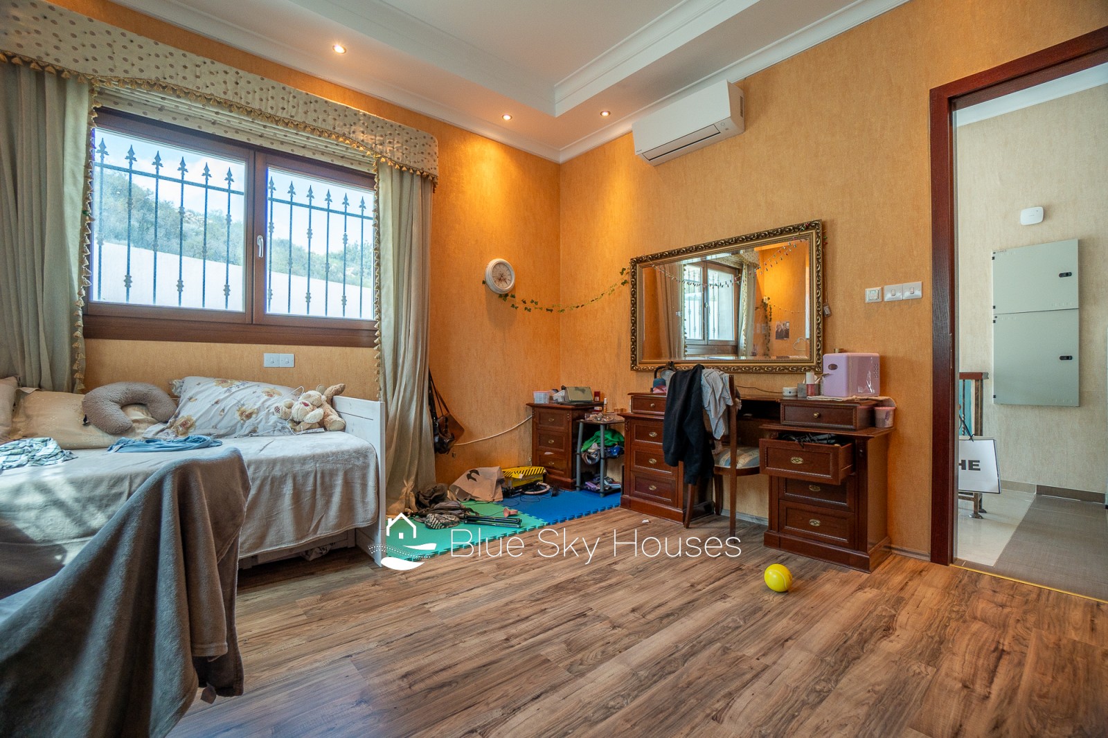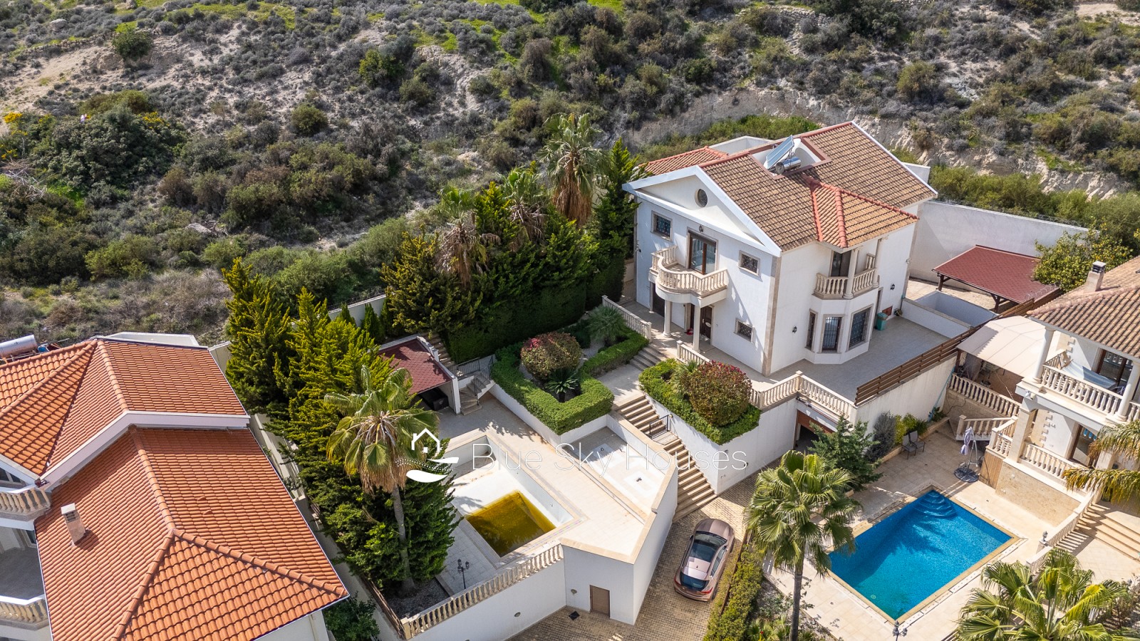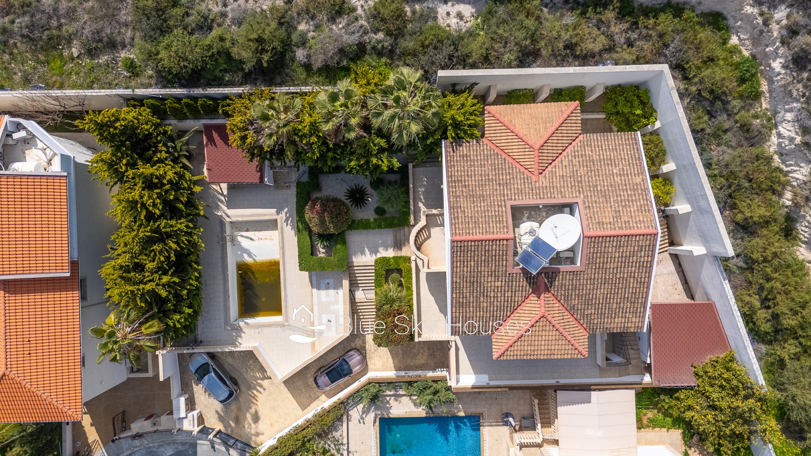 This refined five-bedroom villa is set in the prestigious residential area of Mouttagiaka, one of Limassol’s most sought-after districts for comfortable living and secure investment. Occupying a spacious private plot, the property is embraced by a lush, fully matured garden that offers a high level of privacy and a tranquil atmosphere. The villa features a thoughtfully designed interior with generous living spaces suited to both family life and entertaining. Five well-proportioned bedrooms ensure comfortable accommodation, while the airy living and dining areas seamlessly connect with outdoor terraces, creating a harmonious indoor-outdoor lifestyle. Expansive windows flood the home with natural light and open up calming views of the surrounding greenery. At the center of the outdoor area lies a private swimming pool, perfect for enjoying Cyprus’s sunny climate or hosting relaxed gatherings with family and friends. The landscaped grounds, enhanced by mature trees and greenery, give the property a distinct resort-style feel and are ready for immediate use. Located in a peaceful neighborhood, the villa benefits from close proximity to the beach, reputable schools, dining options, and all key amenities of Limassol. This property represents a rare combination of prime location, privacy, spaciousness, and everyday comfort.