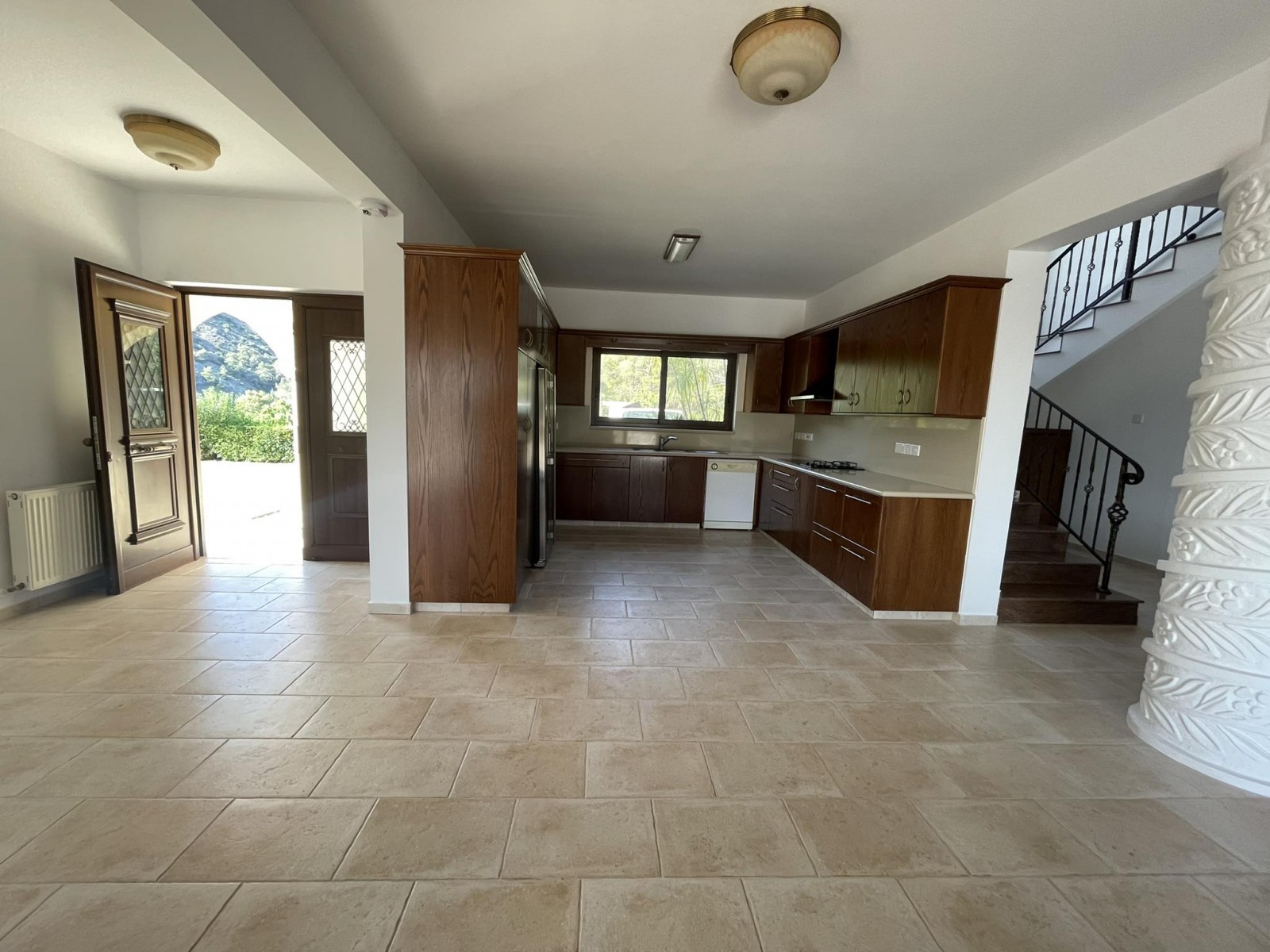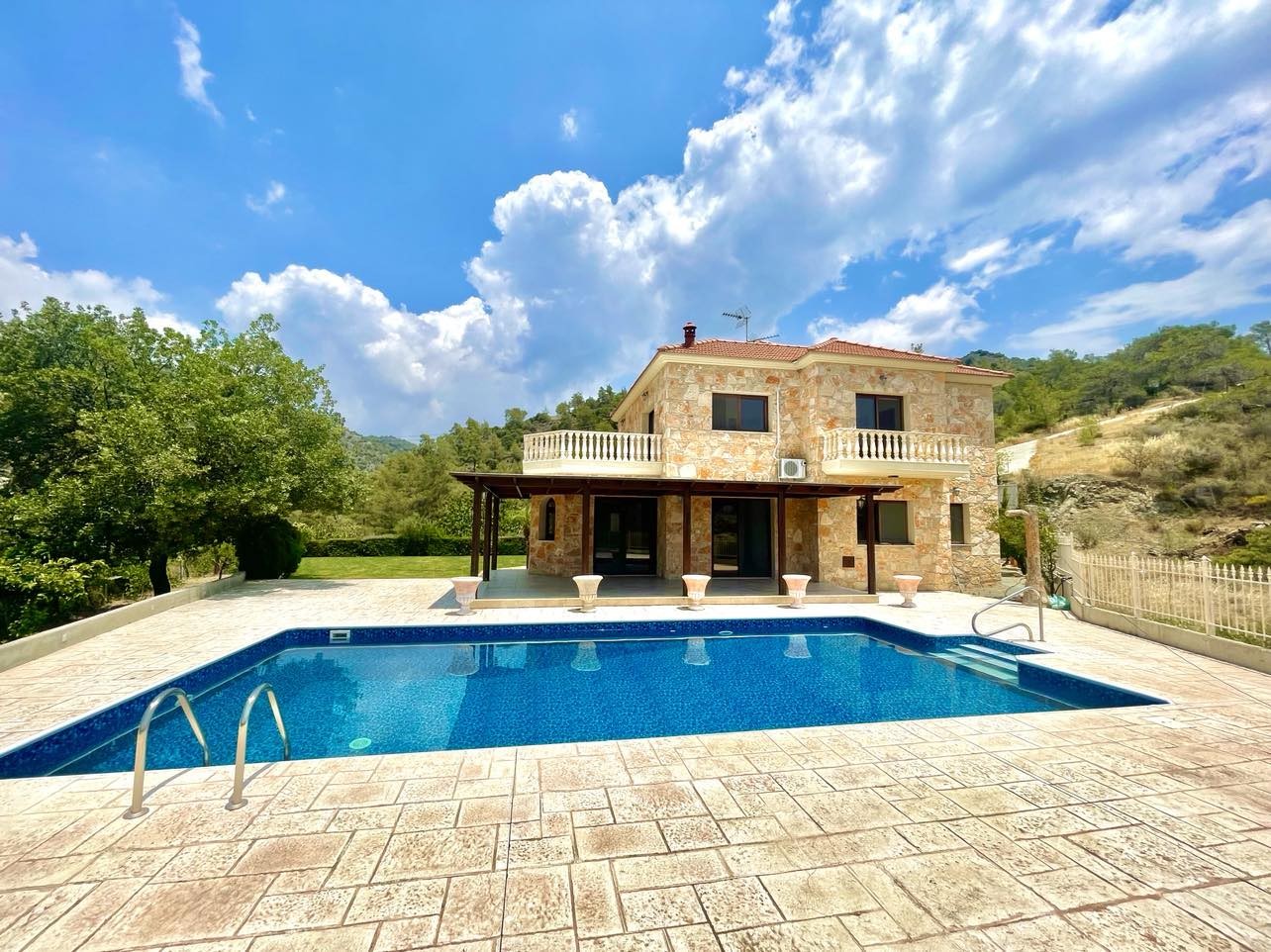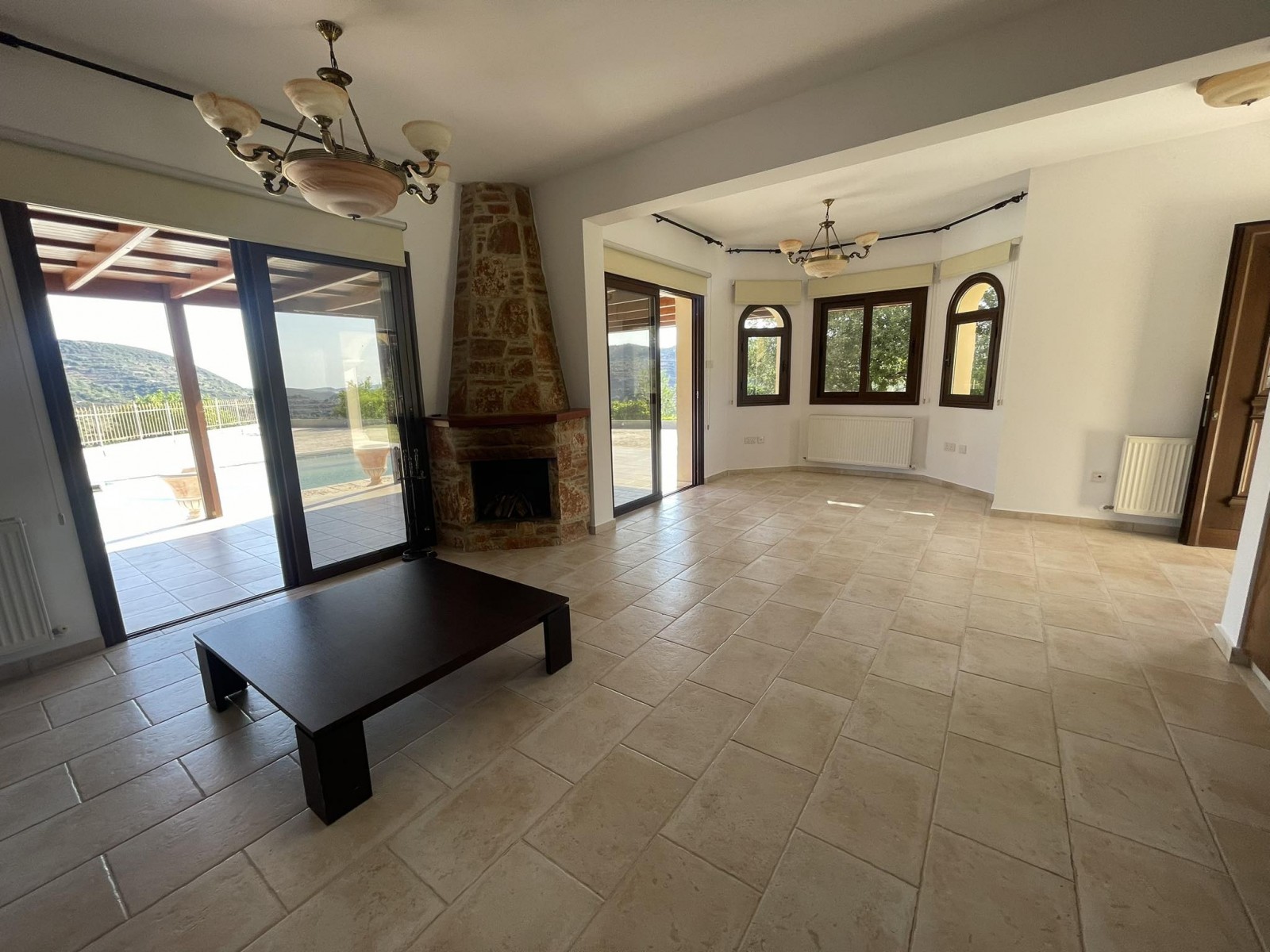 A 4 bedroom detached house for sale in Apsiou village, Limassol. It sits on a plot of 2000 sqm with an internal covered area of 190sqm plus 30sqm covered veranda. There are 2 spacious living rooms and a large kitchen. Huge outdoor areas with a private swimming pool and amazing mountain views.
