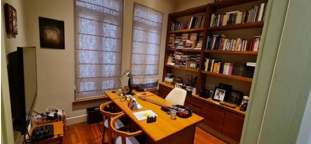 Magnificent 5 bedroom house is of a postmodern signature architectural style, with real luxury level finishes and a total covered areas of 750 sq.m., consisting of the following facilities. Main bedroom bathroom with double Jacuzzi, walk in shower, toilet room. 2 large Living room areas with a big traditional marble fireplace and high ceilings. 1 office with built in library shelves, large playroom/cinema room. Large gym area with a storage room. Covered garage with a remote control door for 3 cars. A Beautiful garden with a large swimming pool. Large covered barbeque area with fridge, sink, storage, dining table for 12 people.