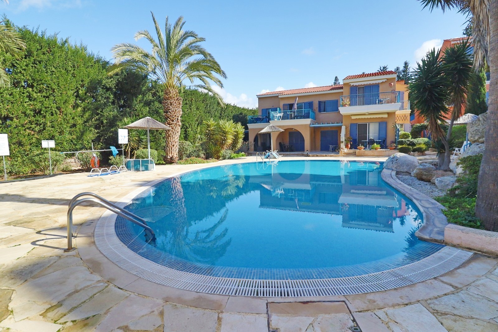 This beautiful home is located in lower Chloraka, just 500 meters from the beach, 5 minutes’ drive from Paphos mall and 10 minutes’ drive from Coral Bay. Very close to amenities, schools, supermarkets making this property ideal as a permanent residency a holiday home or as an investment. This 3 bedroom , 3 bathroom home is nested in a well maintained community with a communal swimming pool and landscaped gardens, strategically positioned to enjoy beautiful sea and mountain views. Truly more than just a home; it's a sanctuary for your retreat. With its thoughtful design and attention to detail. Upon entering you will be greeted by the good size kitchen and open plan lounge / dining area. A beautifully appointed balcony provides relaxation areas with stunning pool & sea views. The property has a good size outside area where you can enjoy the BBQ, and a garage on a lower level. You will also find a short set of stairs which takes you to the large communal swimming pool. The property has Title Deeds.