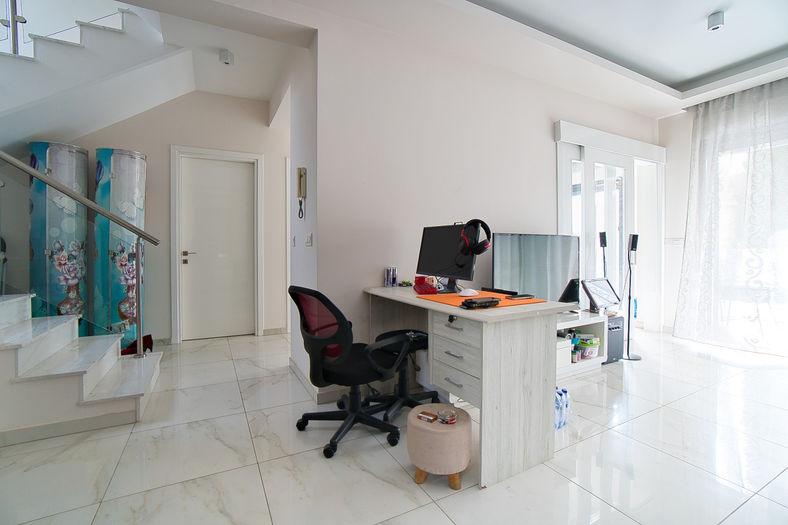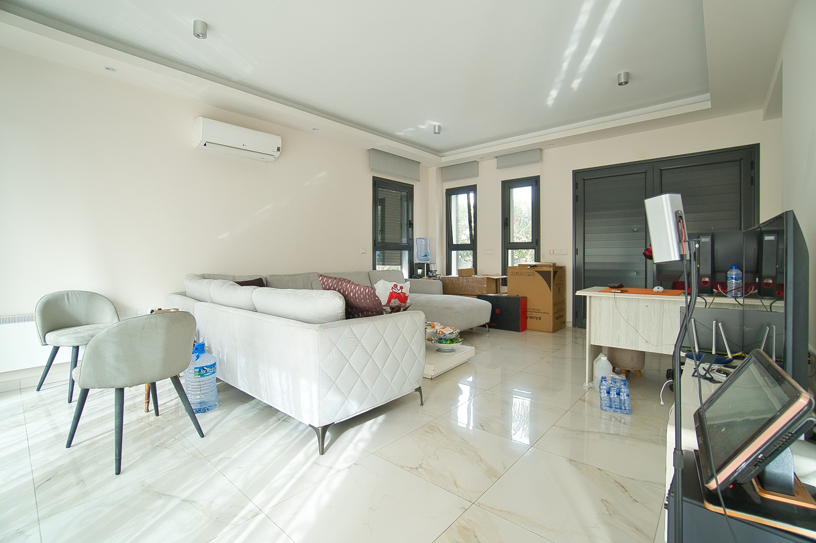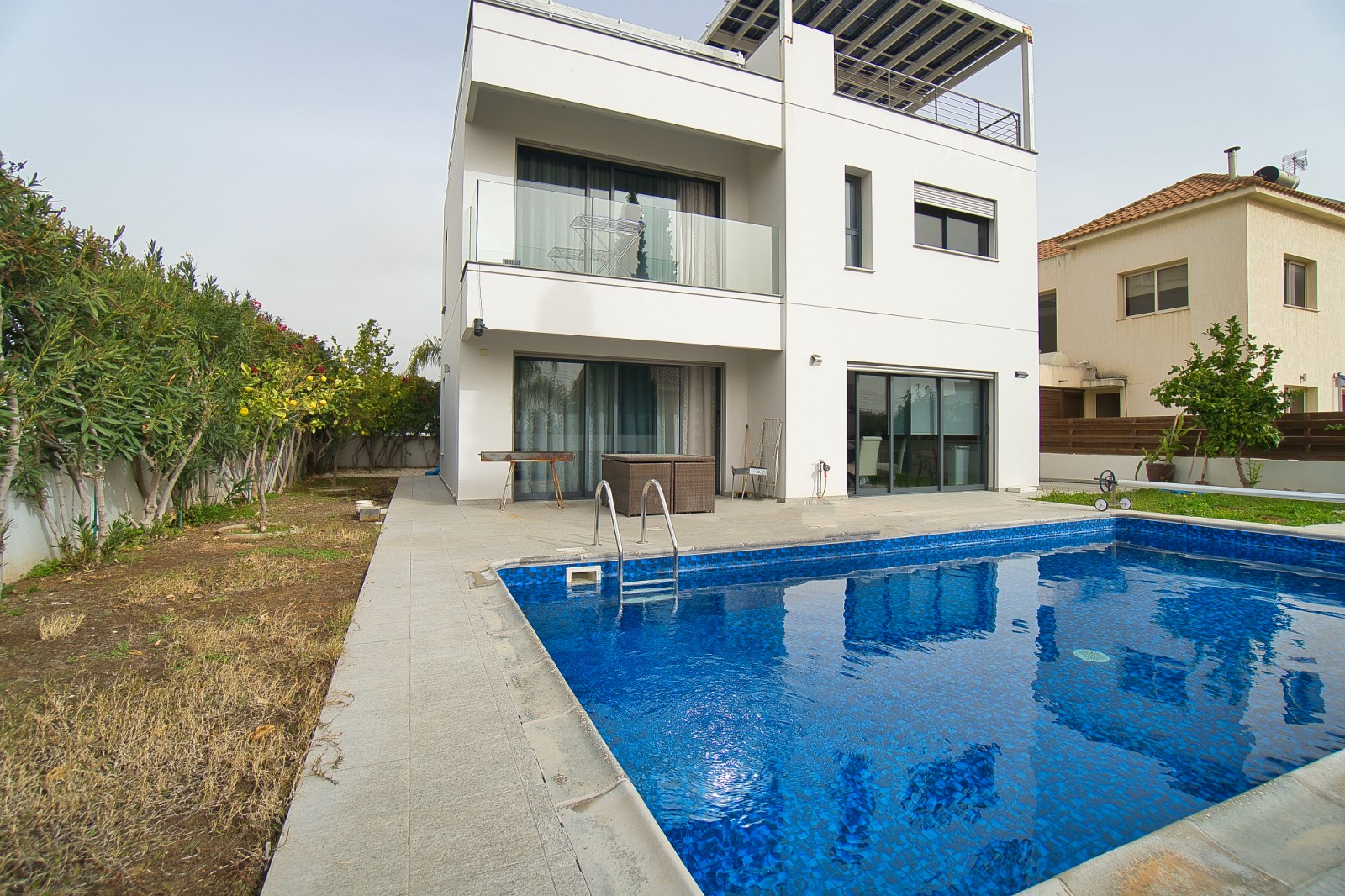Ideally positioned just a five-minute drive from the beach, the villa enjoys the perfect balance of convenience and tranquility, with supermarkets, the town center, and all everyday amenities within easy reach. Located in a peaceful neighborhood, the property invites relaxation with its private swimming pool and stylish entertainment area, creating an idyllic setting for unwinding, entertaining, and enjoying the very best of Mediterranean living.