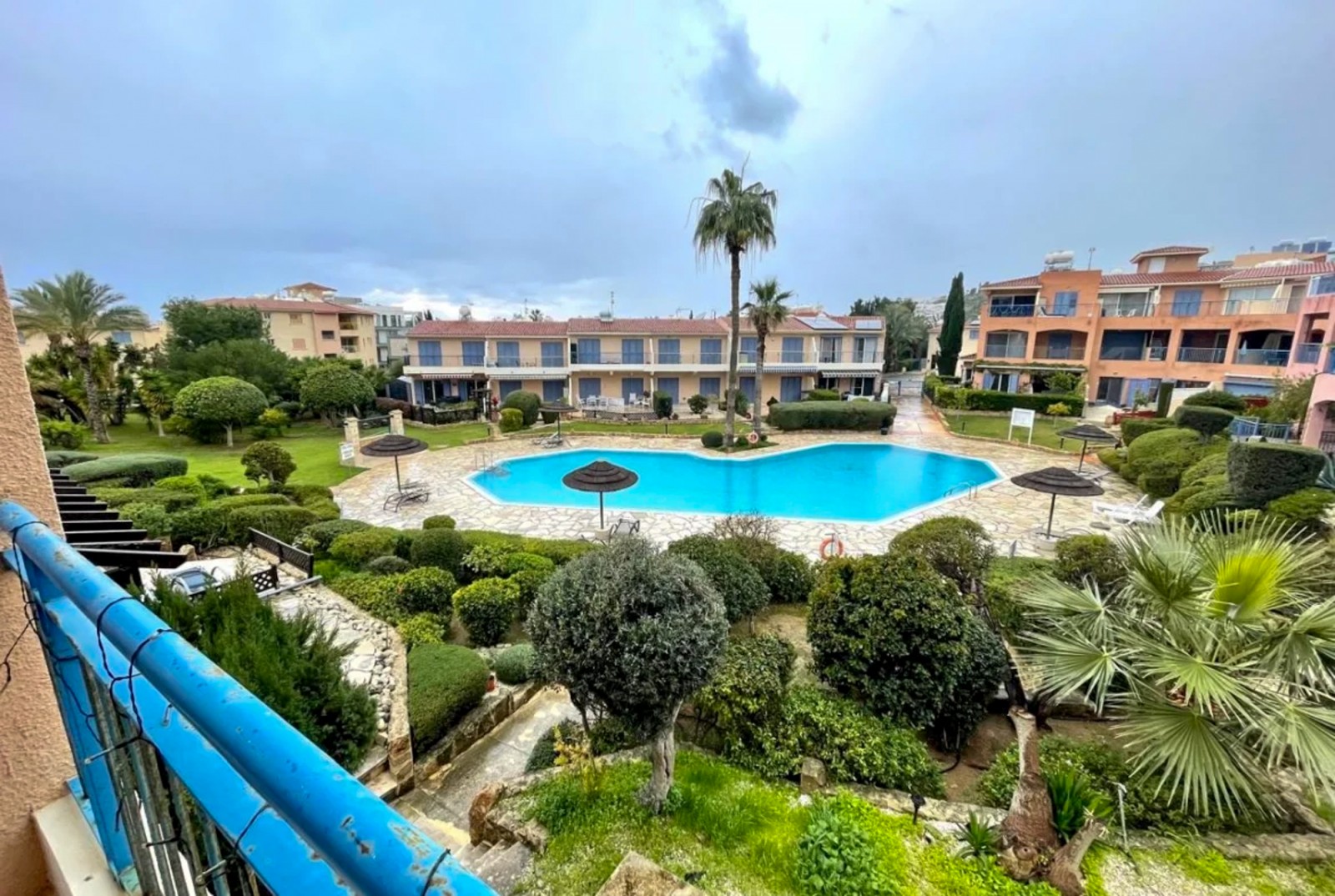 An exceptional opportunity to acquire a beautifully presented two-bedroom apartment in the highly sought-after Regina Gardens complex, ideally situated just 600 metres from the sea in the heart of Paphos. This well-maintained property offers a bright and practical layout, featuring a spacious open-plan living and dining area that flows seamlessly into a fully equipped kitchen. The apartment comprises two generously sized bedrooms and a modern family bathroom, making it ideal for both permanent living and holiday use. A standout feature of the home is the large covered veranda, overlooking the communal swimming pool. This inviting outdoor space is perfect for relaxing or entertaining while enjoying the Mediterranean lifestyle. Set within a popular and well-kept development, the property combines comfort, convenience, and location—making it an excellent investment or a perfect coastal retreat.