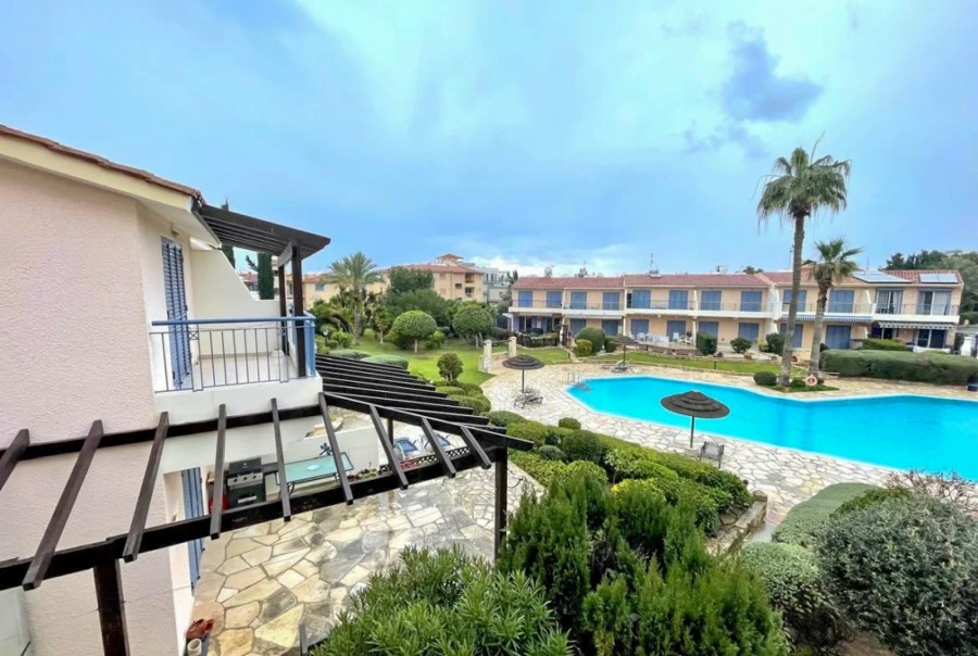 An exceptional opportunity to acquire a beautifully presented two-bedroom apartment in the highly sought-after Regina Gardens complex, ideally situated just 600 metres from the sea in the heart of Paphos. This well-maintained property offers a bright and practical layout, featuring a spacious open-plan living and dining area that flows seamlessly into a fully equipped kitchen. The apartment comprises two generously sized bedrooms and a modern family bathroom, making it ideal for both permanent living and holiday use. A standout feature of the home is the large covered veranda, overlooking the communal swimming pool. This inviting outdoor space is perfect for relaxing or entertaining while enjoying the Mediterranean lifestyle. Set within a popular and well-kept development, the property combines comfort, convenience, and location—making it an excellent investment or a perfect coastal retreat.