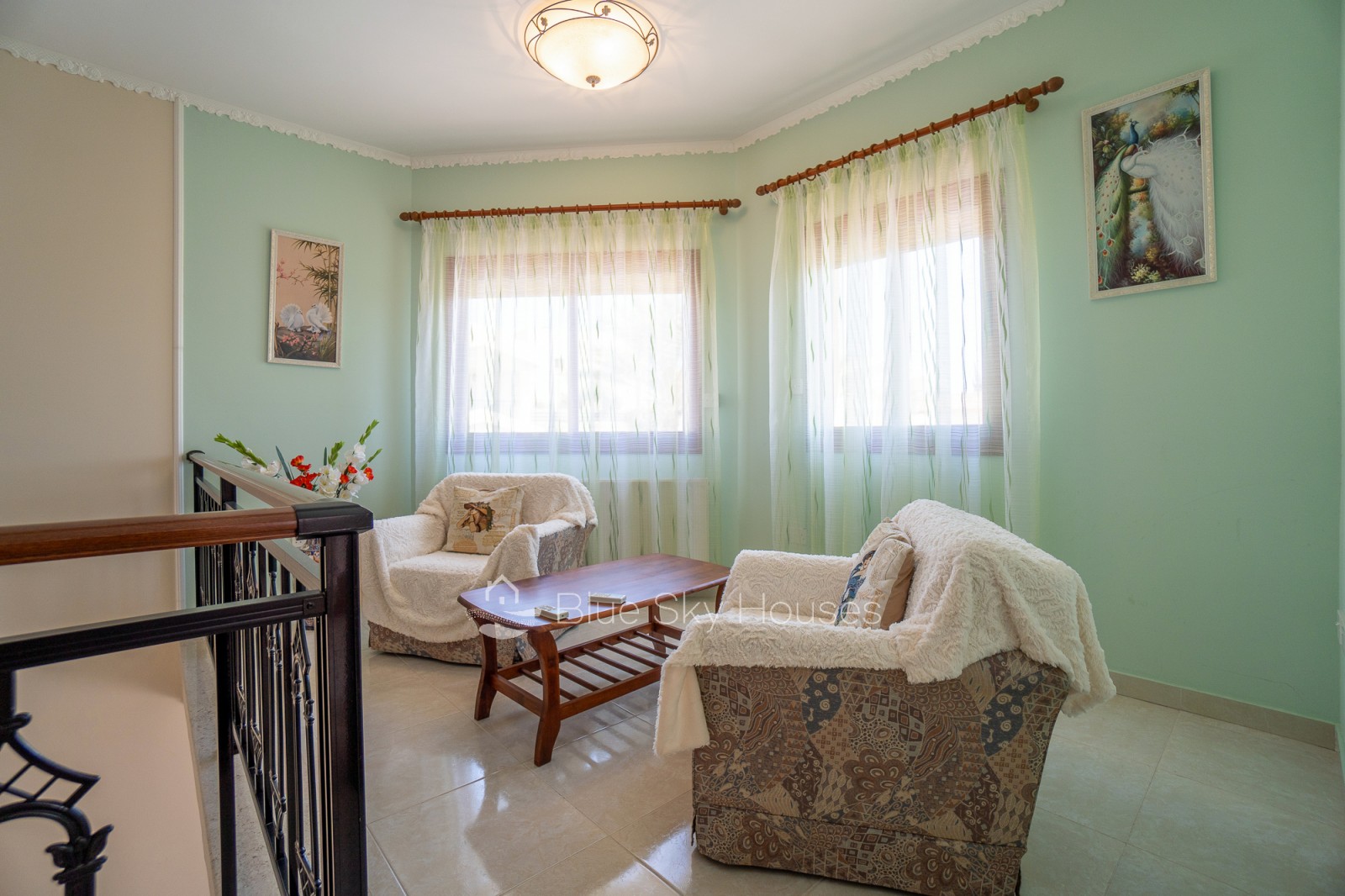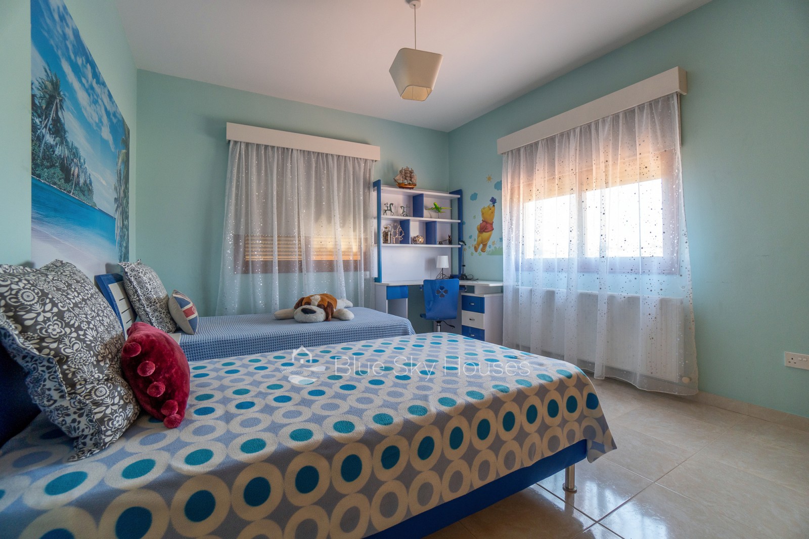 The house is fully air-conditioned in every room and has gas central heating for year-round comfort. It comes fully furnished and features electric shutters on every window.