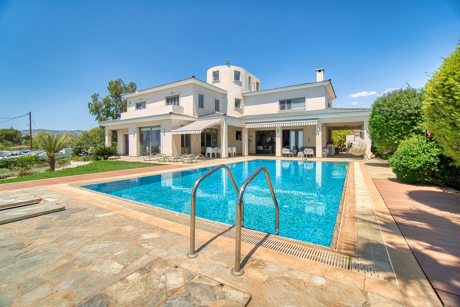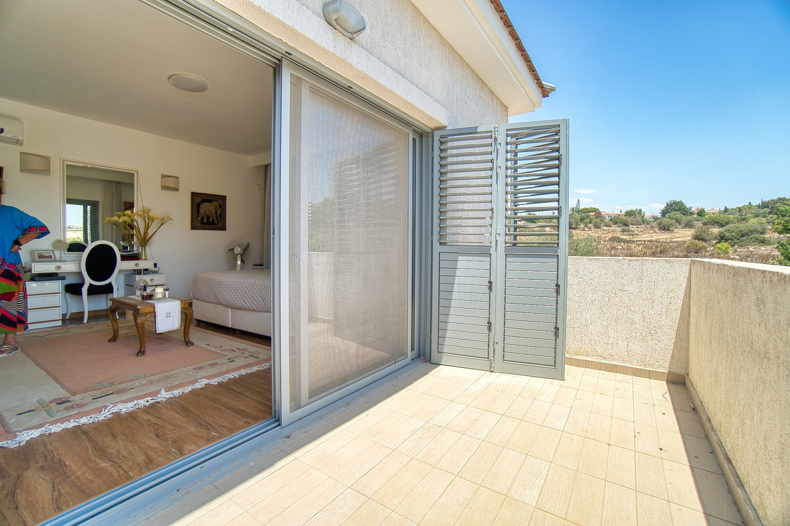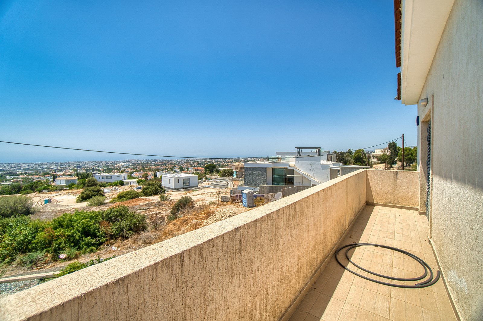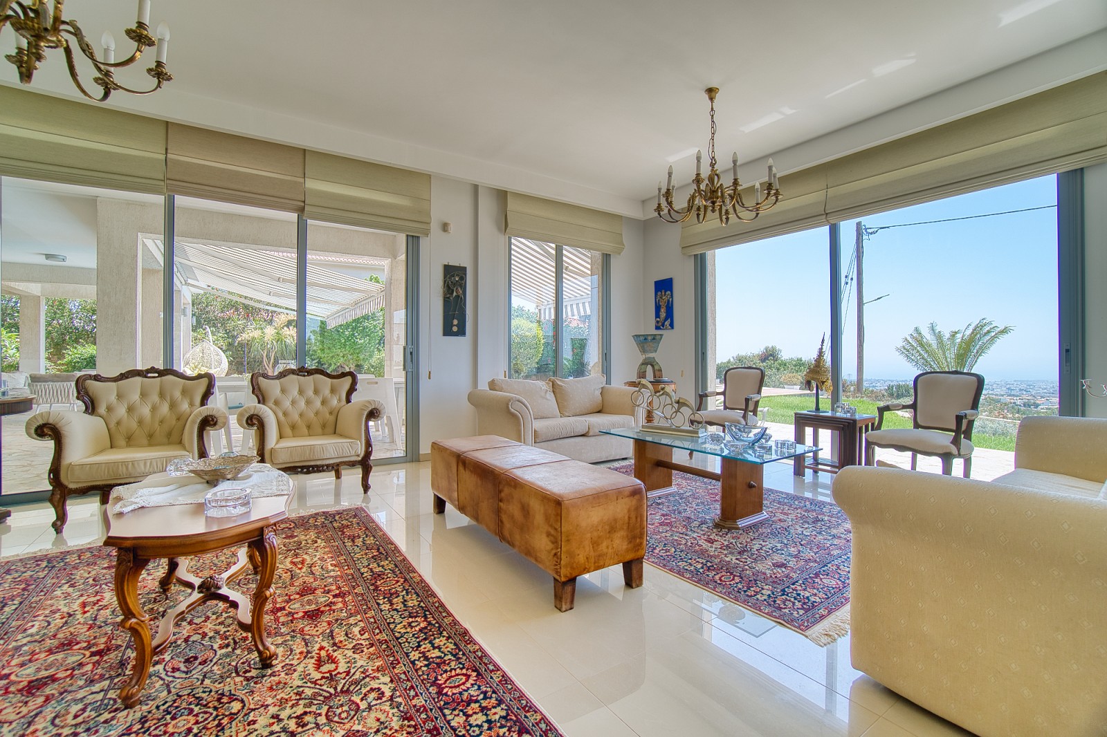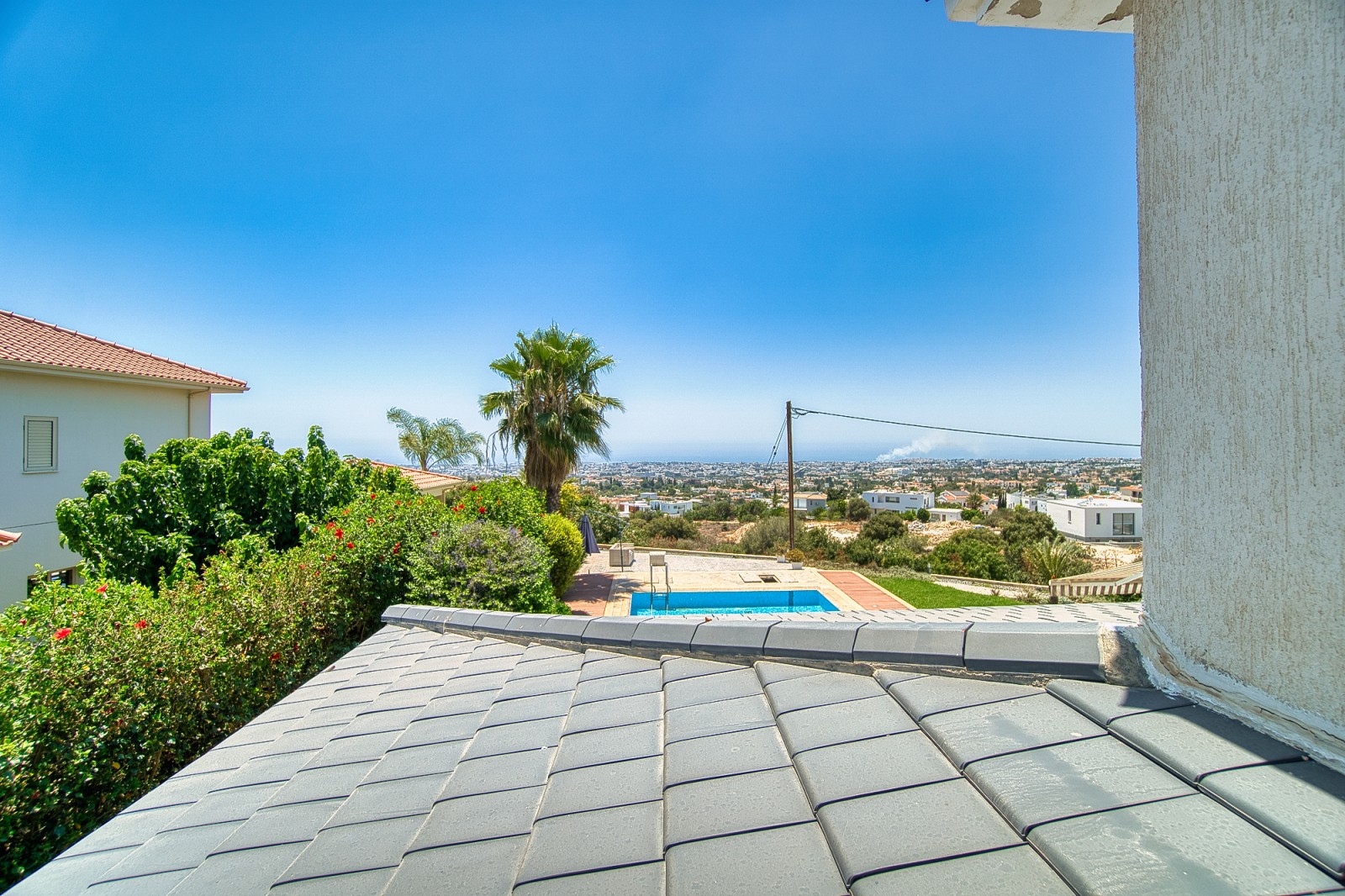 This moderns and luxurious villa is located at an attractive area in Konia,with panoramic views over Paphos city and the sea. The villa is within minutes’ drive to the center of the town and the beach, yet in peaceful surroundings of a village in cul-de-sac, has everything one would need for a stylish lifestyle. Every detail was carefully selected and quality crafted. Highlights include double external walls and double glazing doors sliding into the walls. The expansive living room opens up to a spacious front covered patio with pool and grass area.