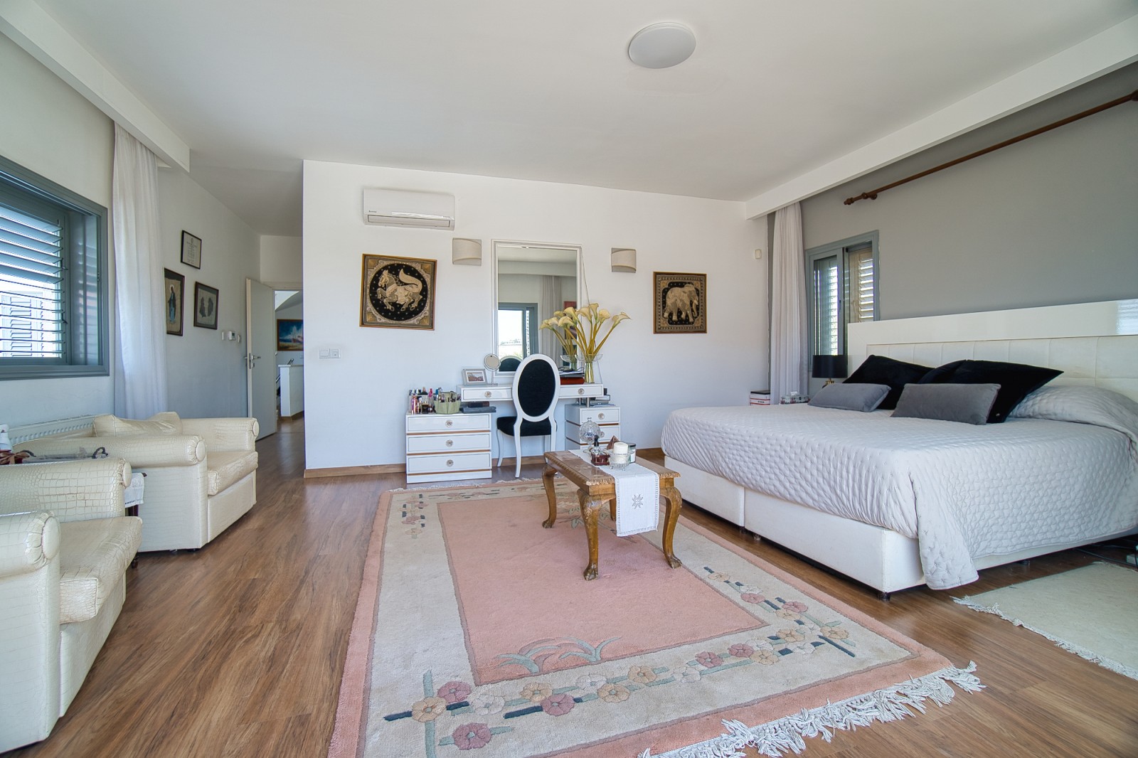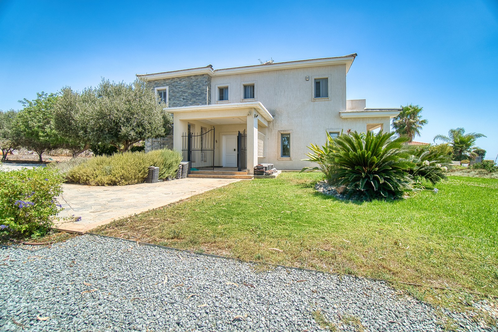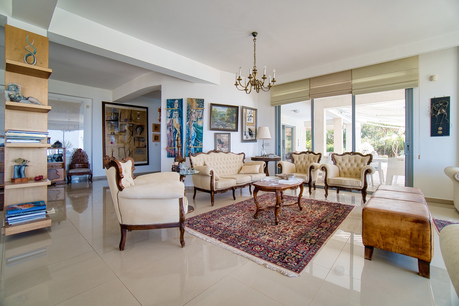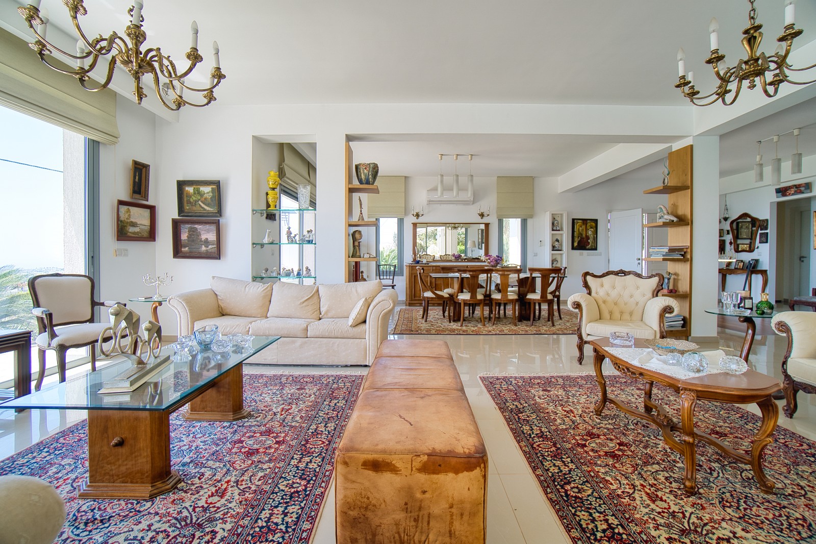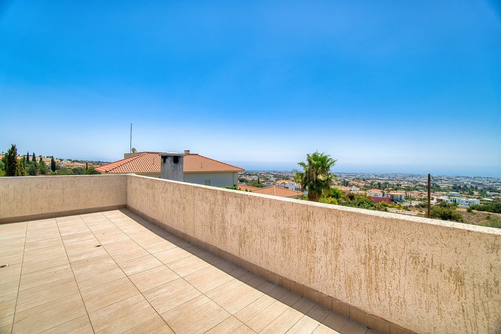 This moderns and luxurious villa is located at an attractive area in Konia,with panoramic views over Paphos city and the sea. The villa is within minutes’ drive to the center of the town and the beach, yet in peaceful surroundings of a village in cul-de-sac, has everything one would need for a stylish lifestyle. Every detail was carefully selected and quality crafted. Highlights include double external walls and double glazing doors sliding into the walls. The expansive living room opens up to a spacious front covered patio with pool and grass area.