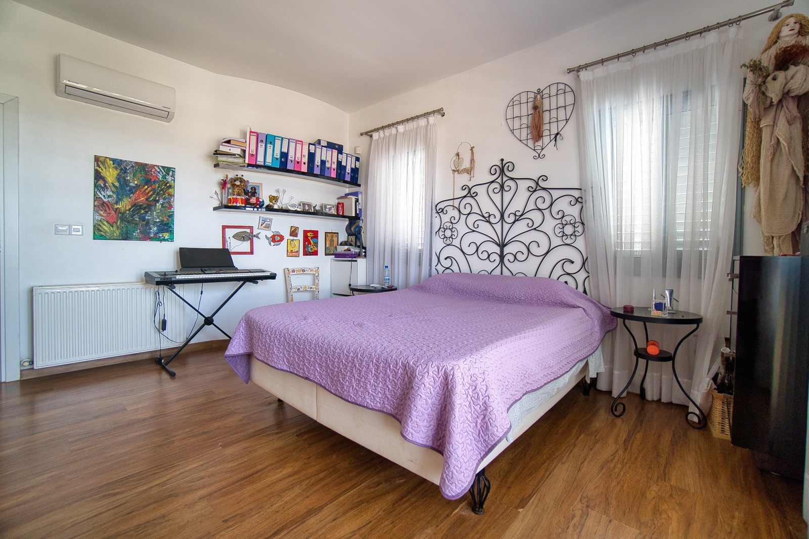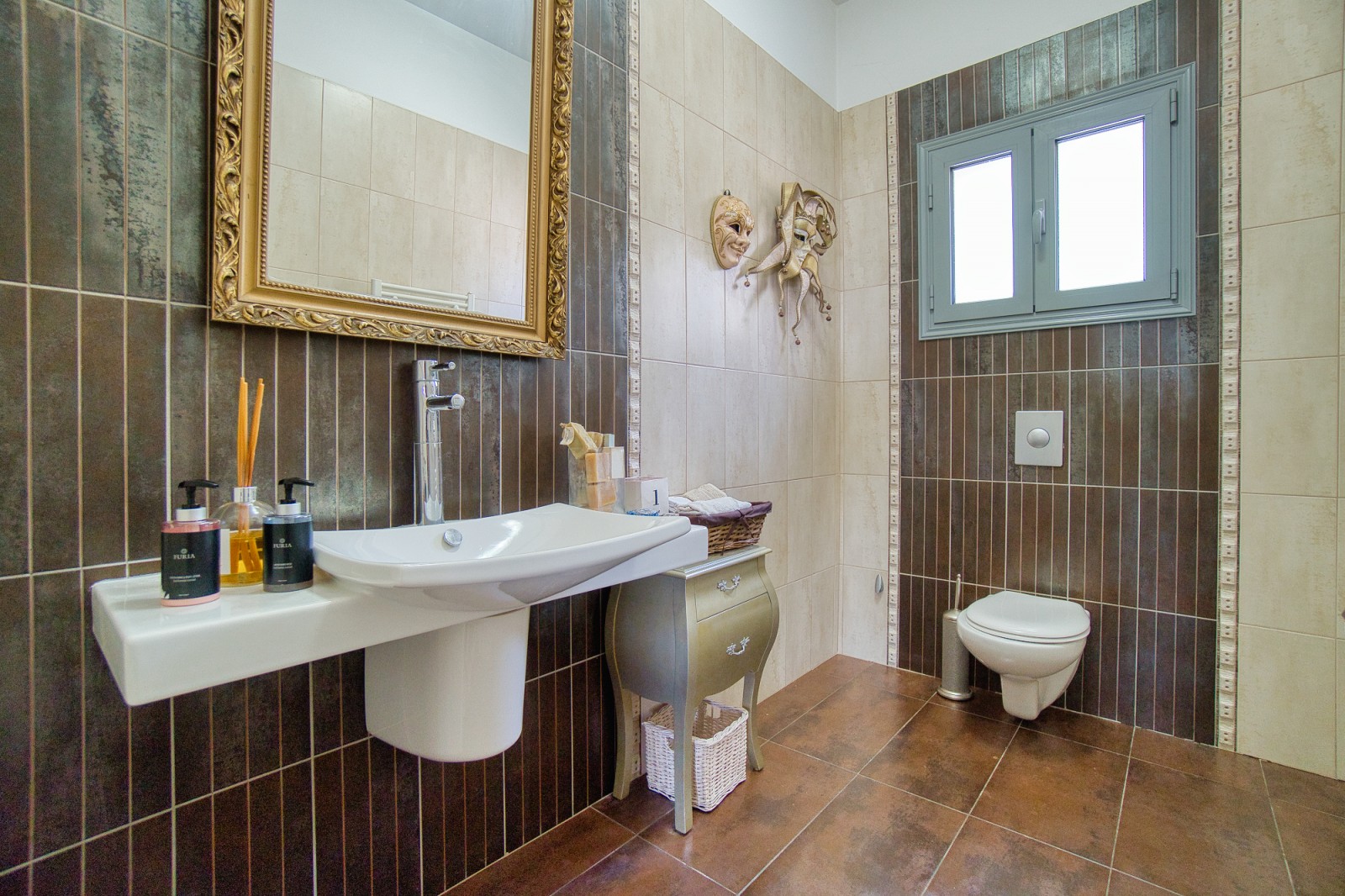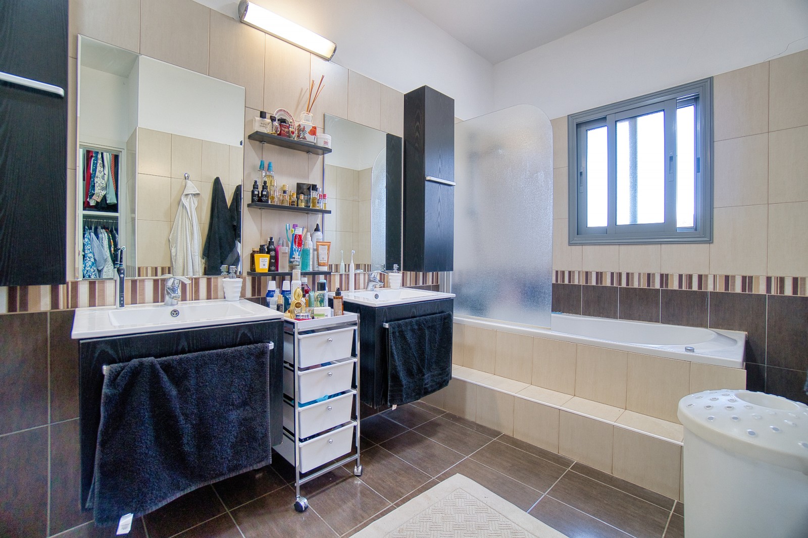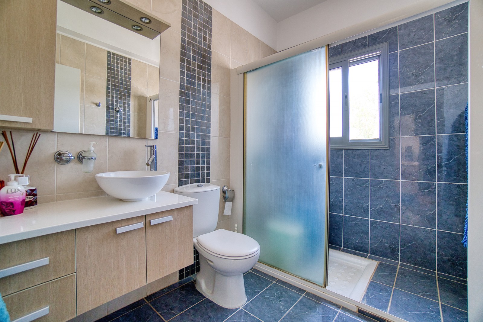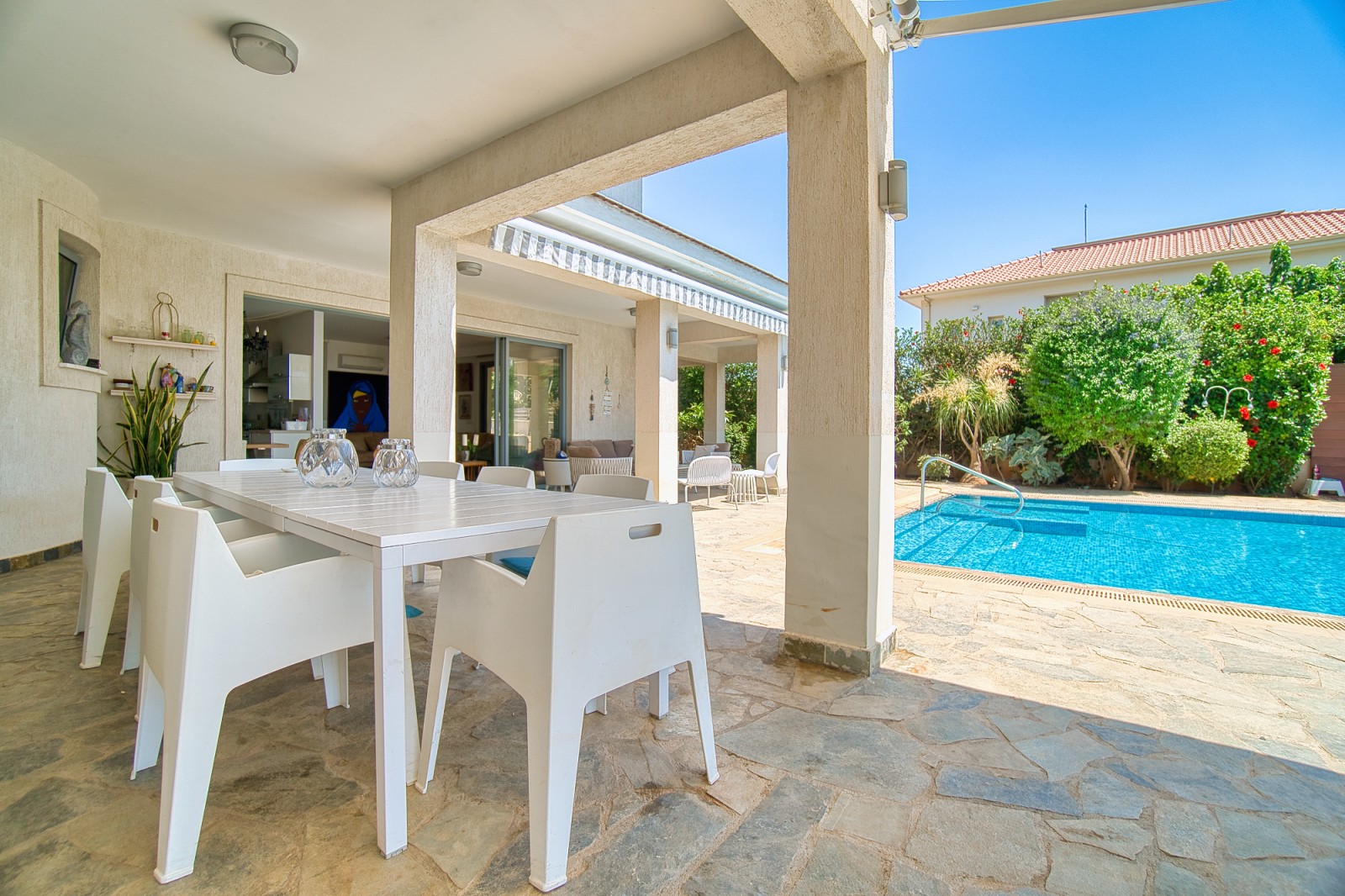 This moderns and luxurious villa is located at an attractive area in Konia,with panoramic views over Paphos city and the sea. The villa is within minutes’ drive to the center of the town and the beach, yet in peaceful surroundings of a village in cul-de-sac, has everything one would need for a stylish lifestyle. Every detail was carefully selected and quality crafted. Highlights include double external walls and double glazing doors sliding into the walls. The expansive living room opens up to a spacious front covered patio with pool and grass area.