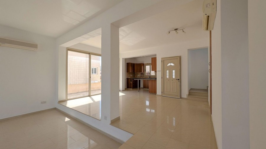 The exterior offers a private yard, swimming pool, and uncovered parking, perfect for relaxation and entertaining. Conveniently located approximately 480m northeast of the Larnaca–Ayia Napa motorway and 375m southwest of Ormidia's Primary School, the home combines a peaceful setting with excellent connectivity.