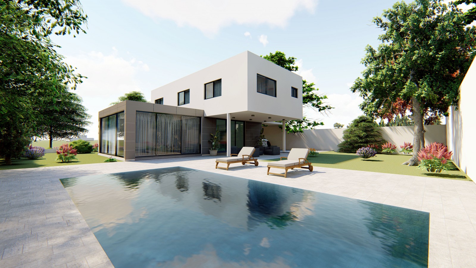 The site is located in the Palodia area, 15 minutes by car from the city center. The house will be built to high standards, offering comfort and exquisite interior spaces.