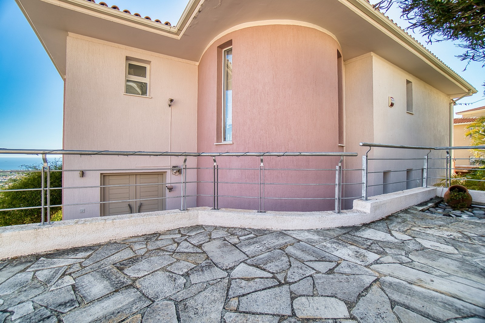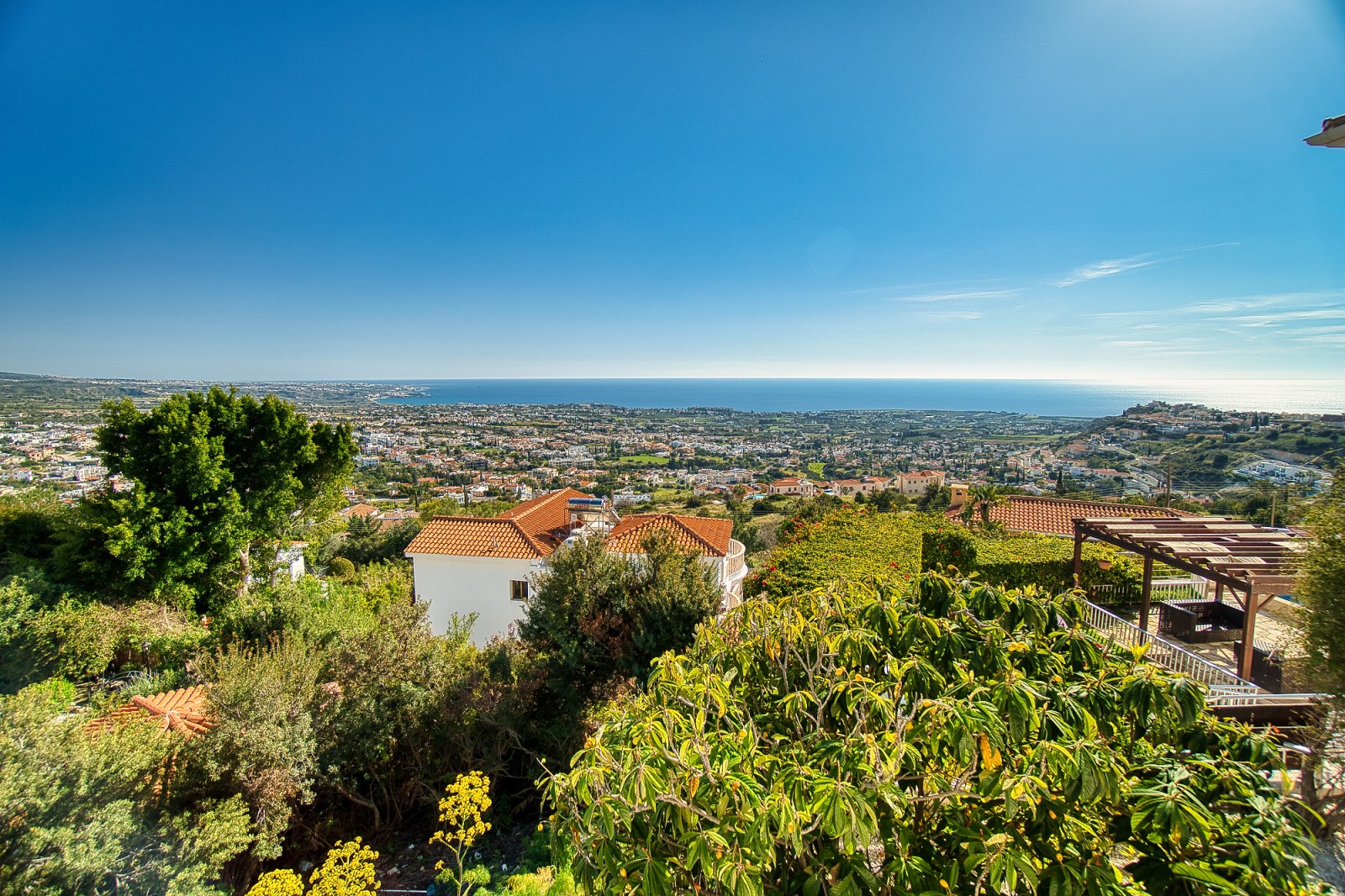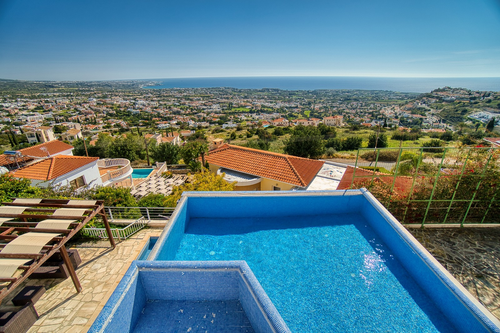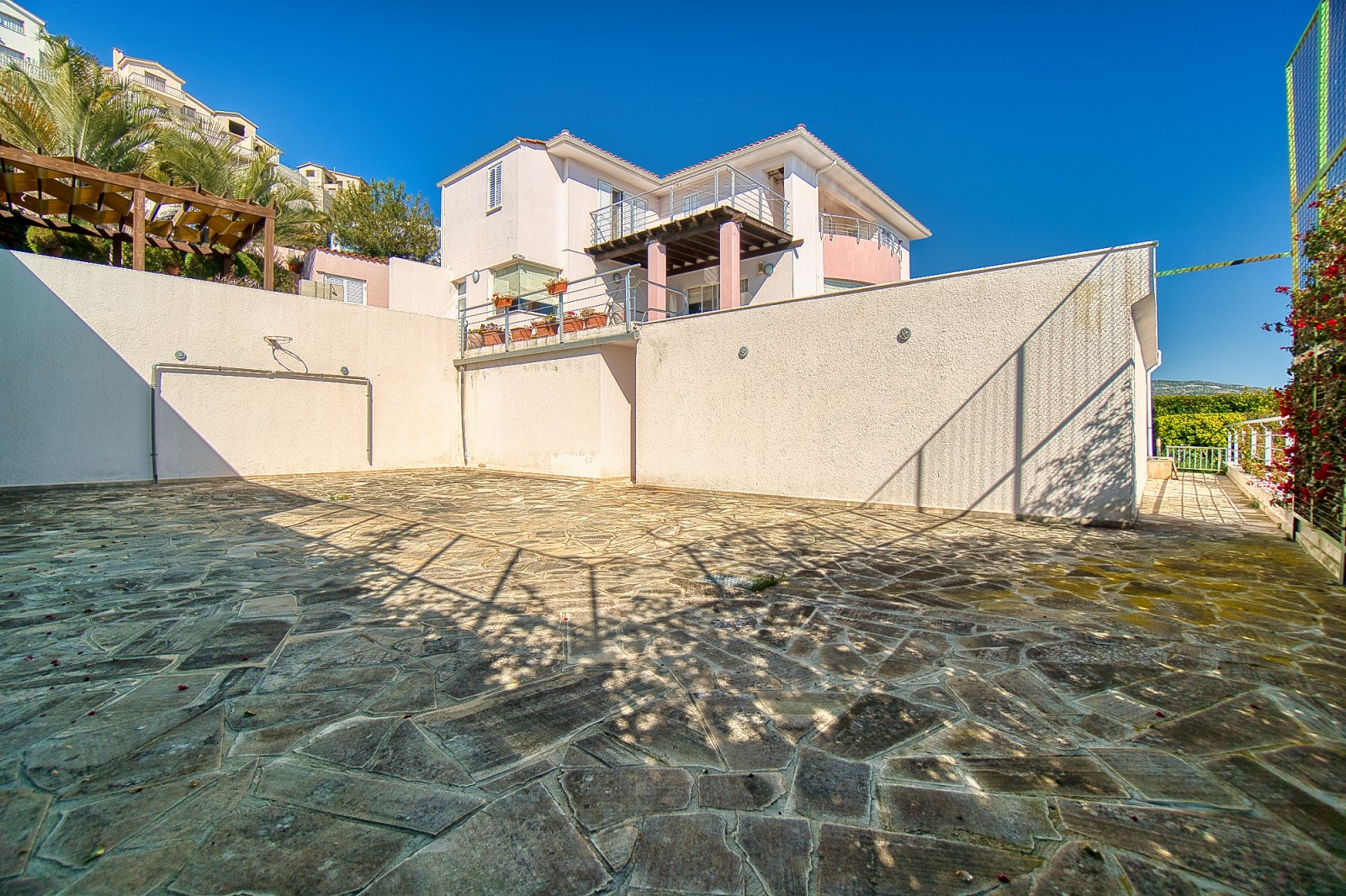 Wonderful 5 bedroom villa for sale in the best area of Peyia. The villa will be able to satisfy the requirements of the most discerning buyer. The view from the panoramic window located in the living room is simply mesmerizing. The finishes of the villa have been used the finest grades of building materials. The kitchen is also distinguished by impeccable style and is made using Corian and stainless steel, combining a practical base and harmonious aesthetics. A modern stove with an elegant range hood is conveniently located on the central island that combines the work area and the bar counter. Kitchen equipment includes absolutely all necessary appliances. An exquisite spiral marble staircase leads from the main floor to the upper and lower levels. The upper floor is reserved for three bedrooms, each has its own bathroom and has access to a shared balcony with stunning sea and city views. The lower floor offers an additional living room that can be used as a lounge for guests of the house. It also has two bedrooms. and a bathroom. All rooms from this floor open onto a courtyard with a stunning waterfall and garden. Next to the multi-level cascade swimming pool, there is a playground for various sports. This villa is waiting for its new lucky owner.