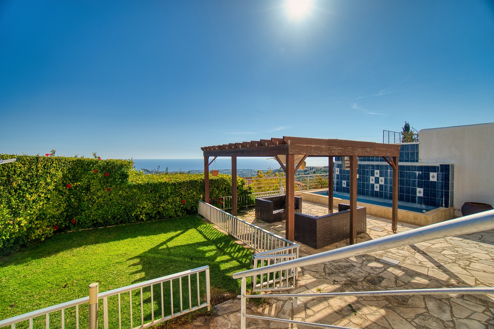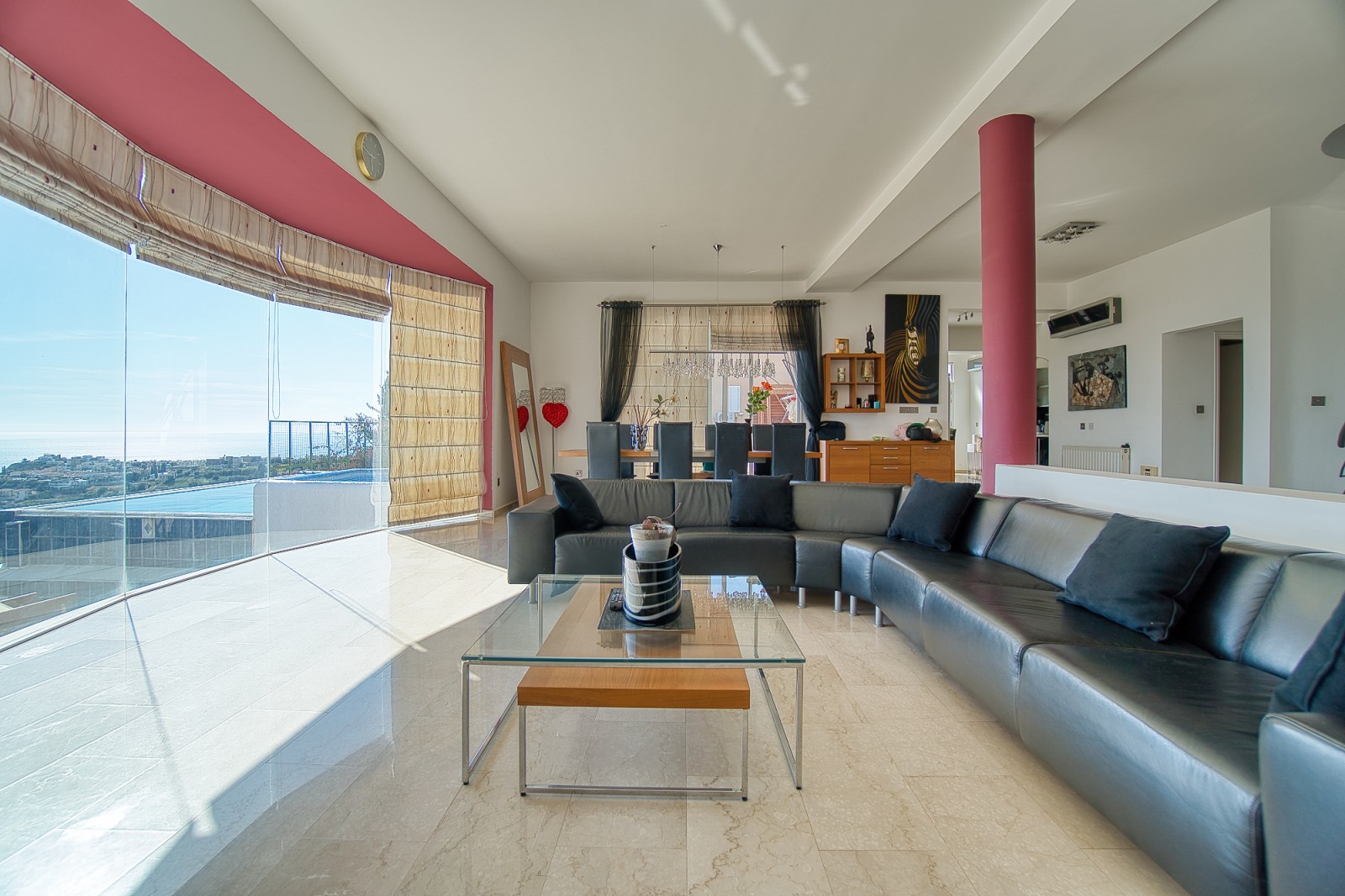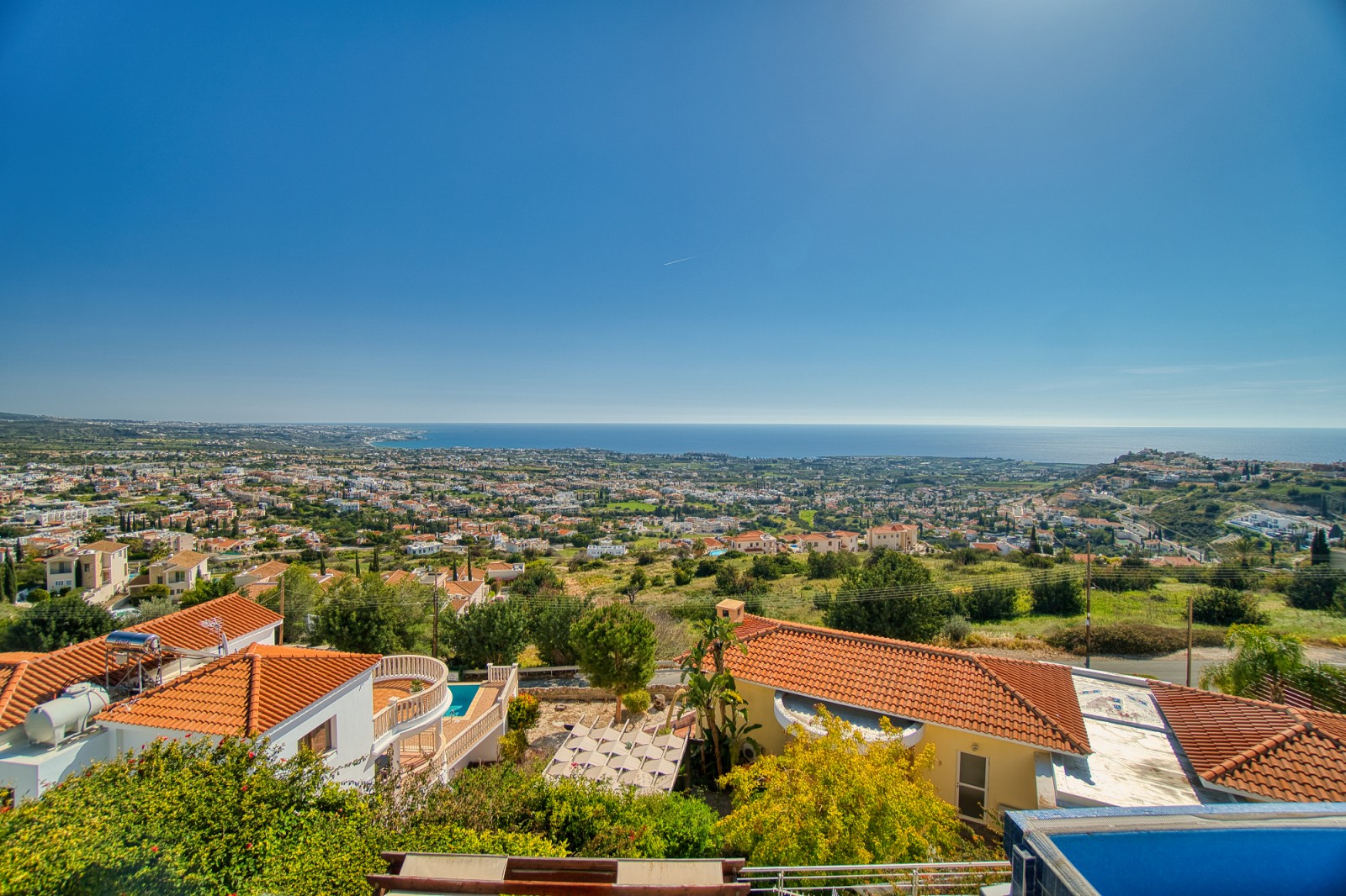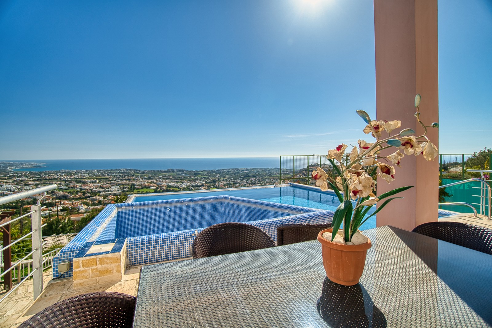 Wonderful 5 bedroom villa for sale in the best area of Peyia. The villa will be able to satisfy the requirements of the most discerning buyer. The view from the panoramic window located in the living room is simply mesmerizing. The finishes of the villa have been used the finest grades of building materials. The kitchen is also distinguished by impeccable style and is made using Corian and stainless steel, combining a practical base and harmonious aesthetics. A modern stove with an elegant range hood is conveniently located on the central island that combines the work area and the bar counter. Kitchen equipment includes absolutely all necessary appliances. An exquisite spiral marble staircase leads from the main floor to the upper and lower levels. The upper floor is reserved for three bedrooms, each has its own bathroom and has access to a shared balcony with stunning sea and city views. The lower floor offers an additional living room that can be used as a lounge for guests of the house. It also has two bedrooms. and a bathroom. All rooms from this floor open onto a courtyard with a stunning waterfall and garden. Next to the multi-level cascade swimming pool, there is a playground for various sports. This villa is waiting for its new lucky owner.