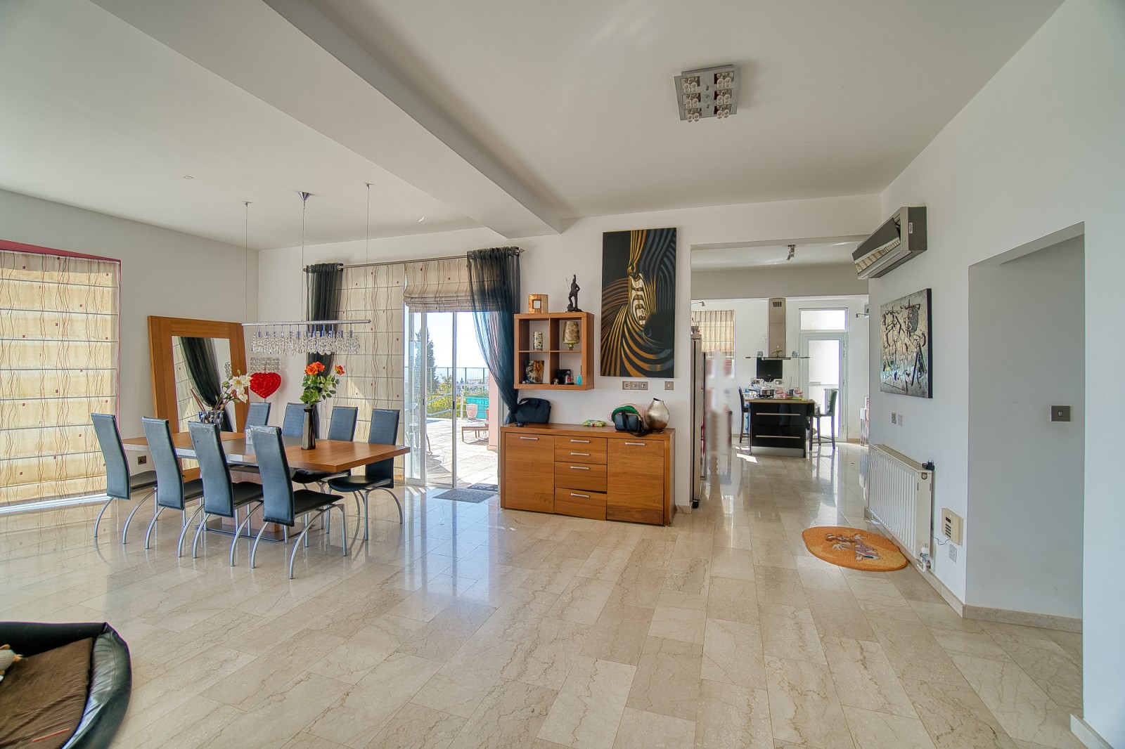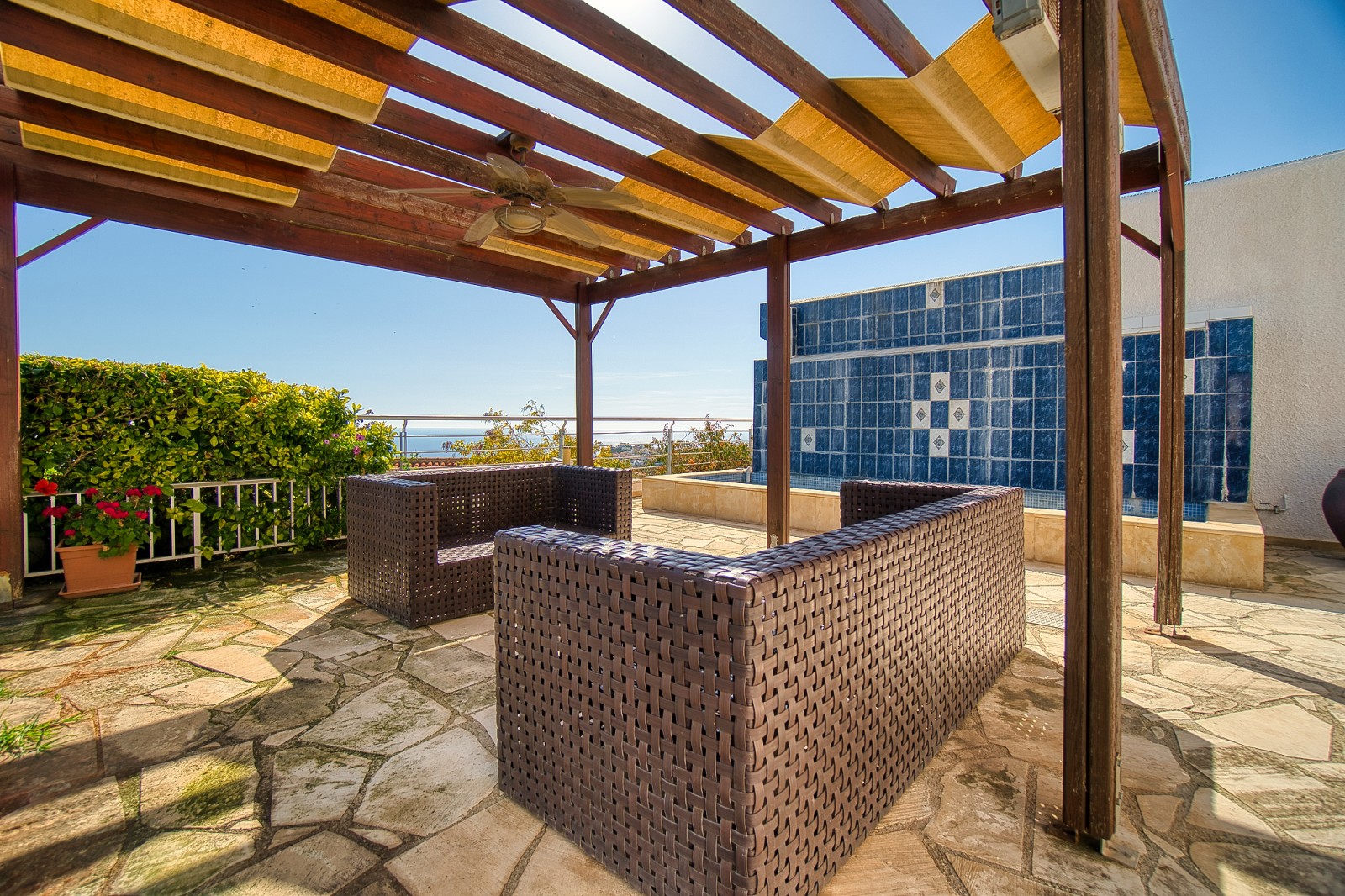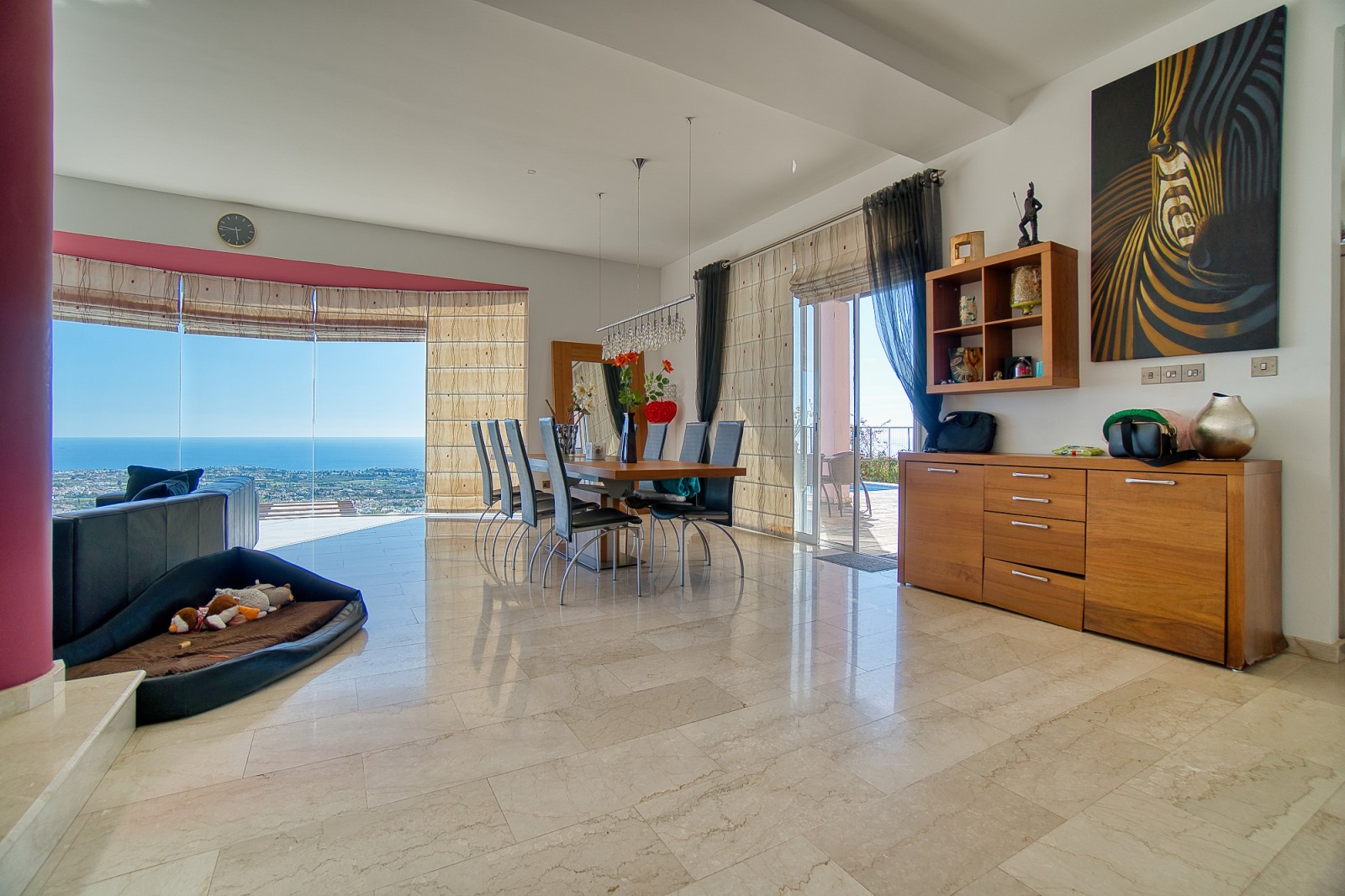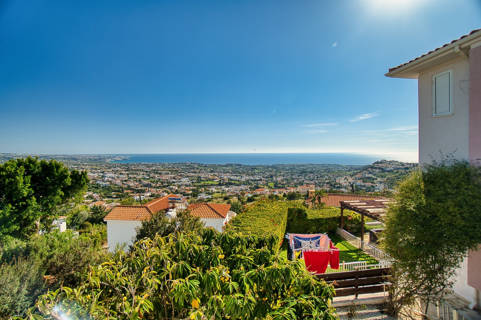 Wonderful 5 bedroom villa for sale in the best area of Peyia. The villa will be able to satisfy the requirements of the most discerning buyer. The view from the panoramic window located in the living room is simply mesmerizing. The finishes of the villa have been used the finest grades of building materials. The kitchen is also distinguished by impeccable style and is made using Corian and stainless steel, combining a practical base and harmonious aesthetics. A modern stove with an elegant range hood is conveniently located on the central island that combines the work area and the bar counter. Kitchen equipment includes absolutely all necessary appliances. An exquisite spiral marble staircase leads from the main floor to the upper and lower levels. The upper floor is reserved for three bedrooms, each has its own bathroom and has access to a shared balcony with stunning sea and city views. The lower floor offers an additional living room that can be used as a lounge for guests of the house. It also has two bedrooms. and a bathroom. All rooms from this floor open onto a courtyard with a stunning waterfall and garden. Next to the multi-level cascade swimming pool, there is a playground for various sports. This villa is waiting for its new lucky owner.