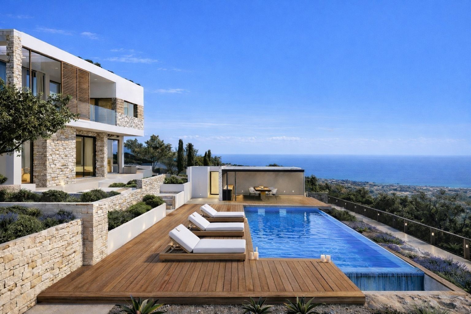 Modern development located in the peaceful hills of Pegeia, offering breathtaking views and a relaxed lifestyle. With a new school planned across the road and easy access to Pegeia’s shops, restaurants, and services, the residences are perfect for families. Coral Bay, with its sandy beaches and vibrant atmosphere, is just a short drive away. Residents also benefit from proximity to Cap St Georges Hotel & Resort and a planned waterpark, creating an ideal blend of convenience and leisure.
