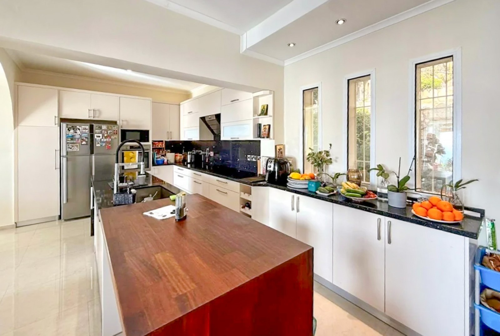 Set on an expansive 818 sq. m plot, the property is surrounded by a meticulously landscaped garden adorned with fruit trees and lush shrubs, all maintained effortlessly with an automatic irrigation system. Covered parking further enhances the convenience of this remarkable home.