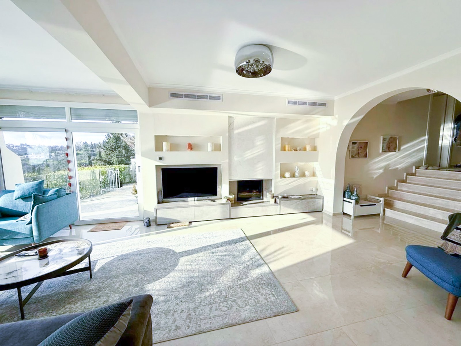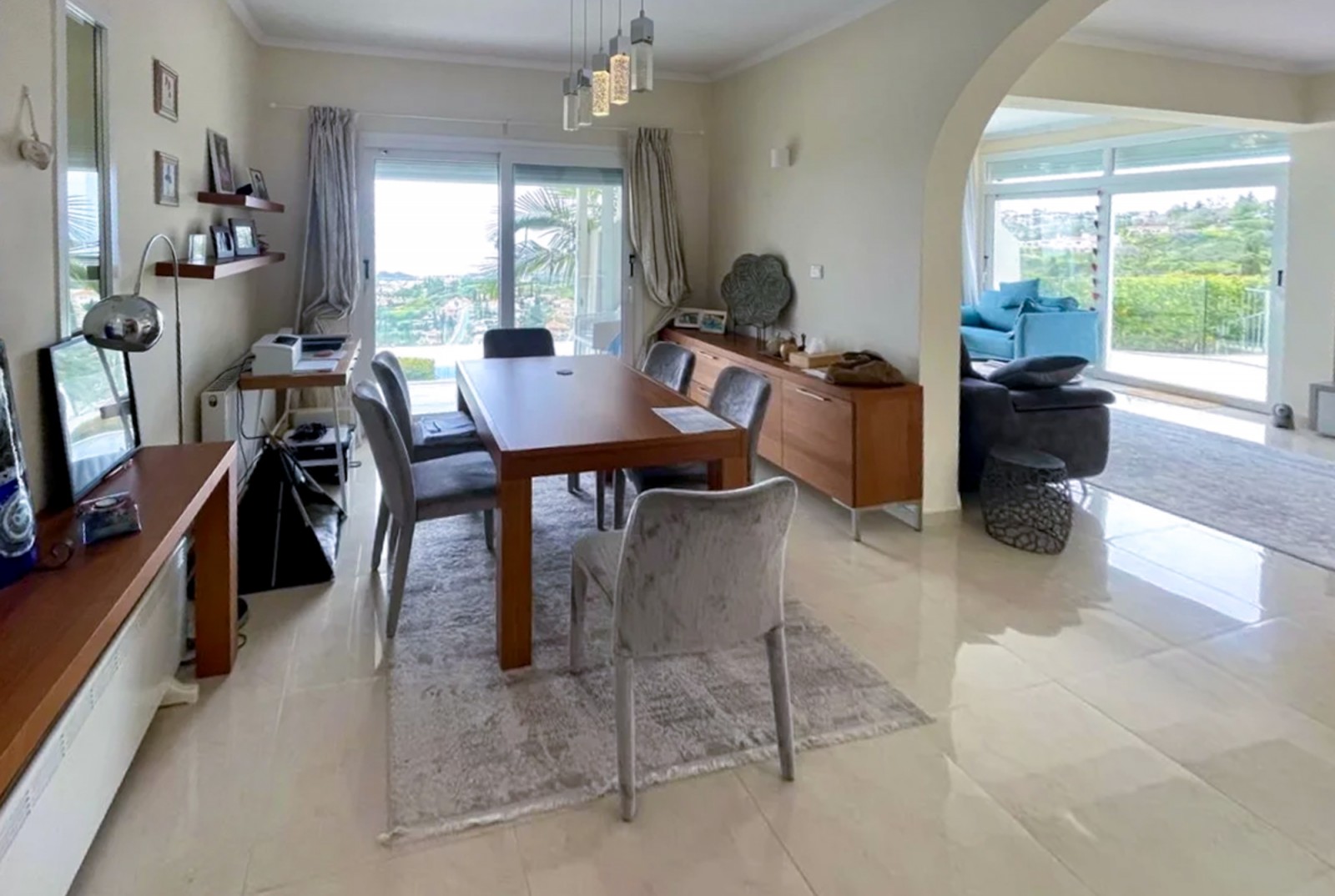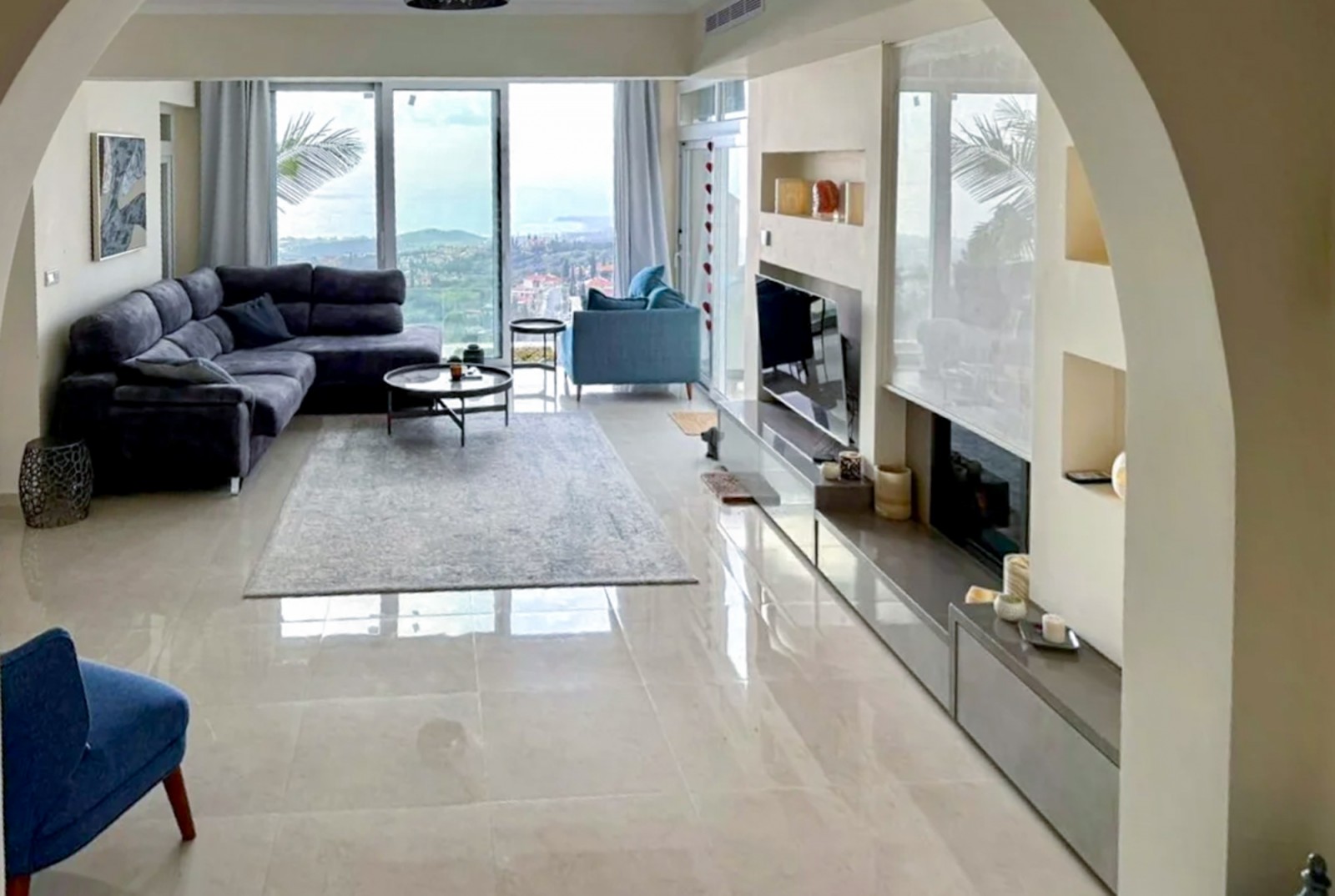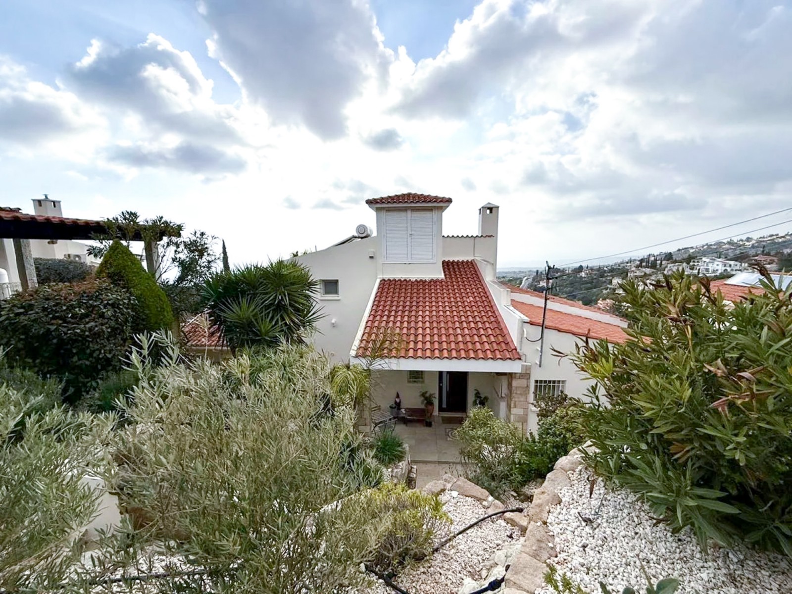 Perched gracefully on the sun-drenched hillsides of Kamares, this magnificent three-bedroom villa represents the very essence of refined Mediterranean luxury. Set within the prestigious Kamares Villas, one of the most distinguished residential enclaves in Cyprus, the property enjoys an unrivaled position with sweeping panoramic views of the sparkling Paphos coastline and majestic mountain landscapes. Celebrated for its award-winning design and timeless elegance, Kamares is far more than a residential development—it is a lifestyle. A harmonious blend of traditional stone architecture, graceful arches, and natural materials creates an atmosphere of understated sophistication, while the surrounding country club ambiance caters to those who appreciate exclusivity, tranquility, and the art of fine living. This exceptional villa was fully renovated and modernized in 2020, seamlessly combining contemporary comfort with classic Mediterranean charm. Upon arrival, a welcoming entrance hall leads into an expansive living space bathed in natural light, where large openings frame breathtaking sea views. A staircase enhances the sense of grandeur, guiding you through thoughtfully designed interiors. The sleek, fully equipped modern kitchen sits adjacent to the living area, offering both functionality and style. The residence comprises three beautifully appointed bedrooms, two elegant bathrooms, and a guest toilet. Each room is designed to maximize comfort and capture the stunning vistas, ensuring that the beauty of Paphos is ever-present. Underfloor heating, gas central heating, solar panels, and a charming fireplace provide year-round comfort, creating a warm and inviting ambiance in every season.