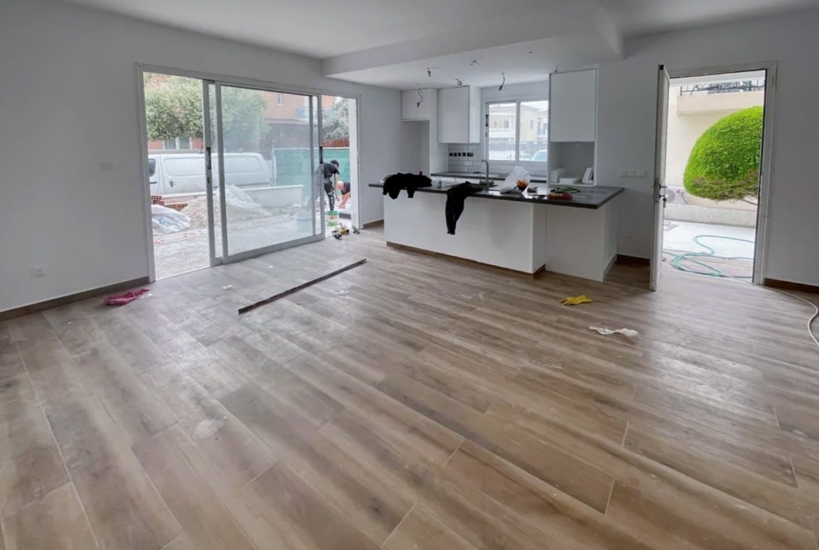 This two-bedroom one bathroom ground-floor corner apartment is located in the sought-after Universal area of Kato Paphos, within a private development of just six residences. Fully renovated to a high standard, the property will be ready by the end of April 2026, offering a modern and comfortable living space. The apartment features a spacious open-plan living area with a contemporary kitchen fitted with white goods and a central island. Large doors from the living room open onto a good-sized veranda, providing an ideal space for outdoor relaxation. Brand-new air conditioning units are installed in all rooms.