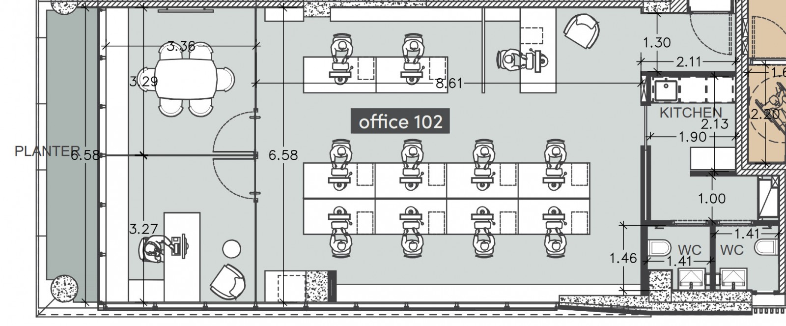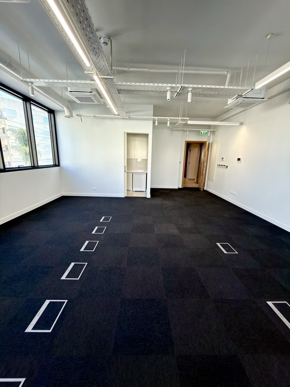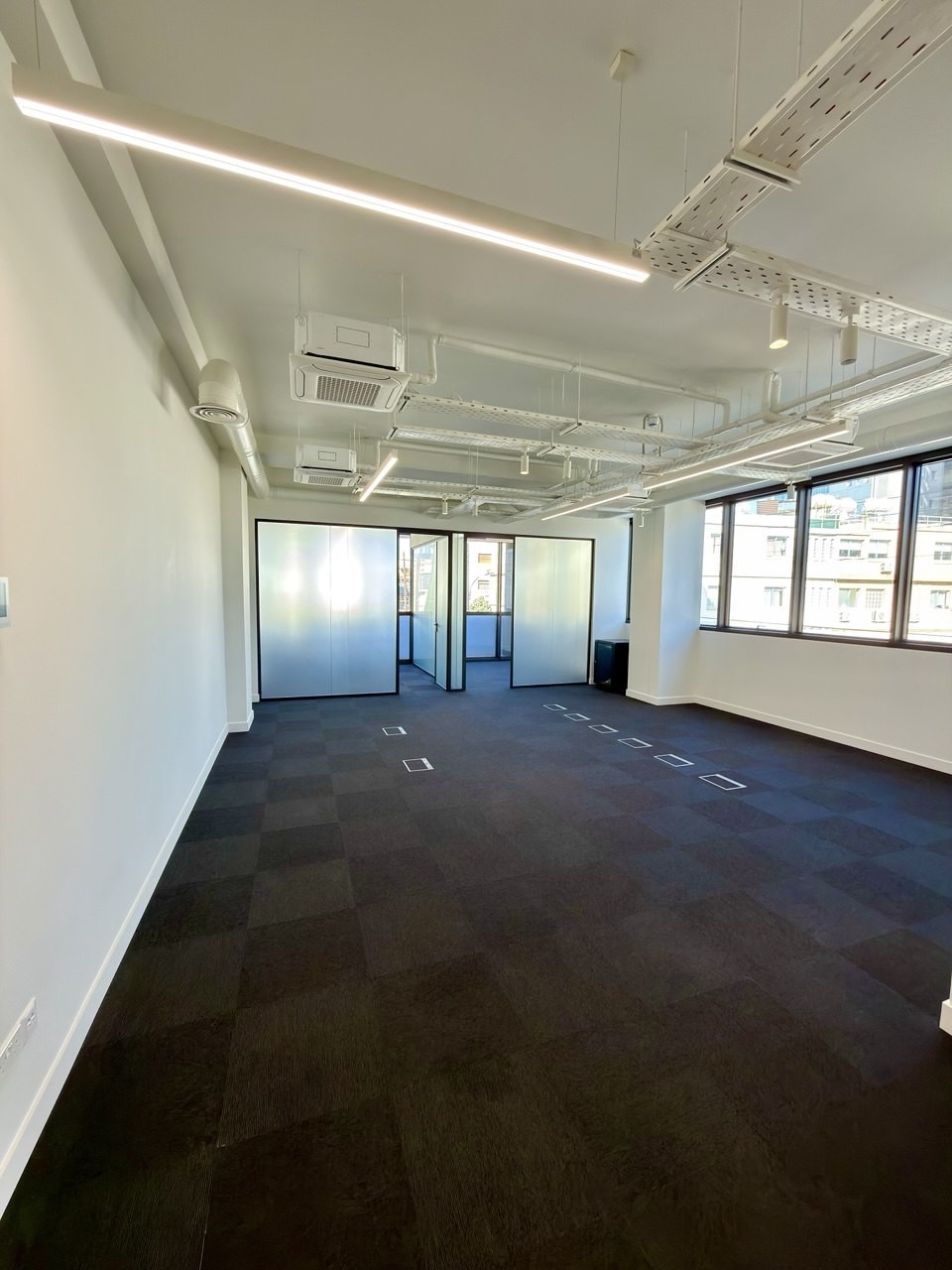 The office is offered unfurnished, allowing tenants to arrange the interior layout and furniture according to their operational needs. Two covered private parking spaces are allocated to the office.