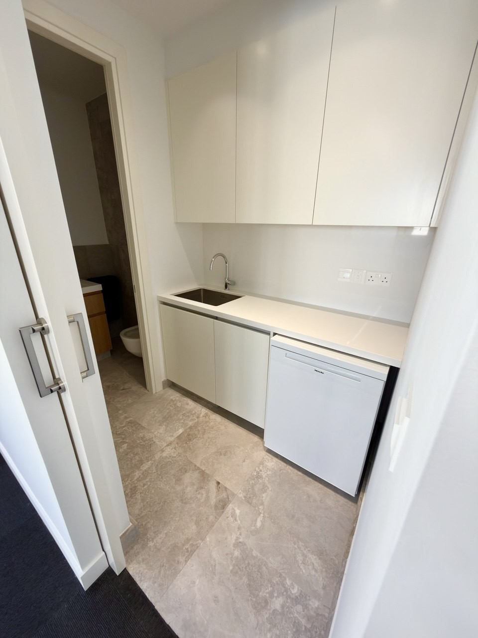 The office is delivered with full high quality finishing and is ready for immediate use. It includes air conditioning and ventilation systems, carpet flooring, a coded lock and video intercom system for secure access. The space also benefits from fully equipped toilet facilities and a kitchen fitted with appliances such as a refrigerator and dishwasher.
