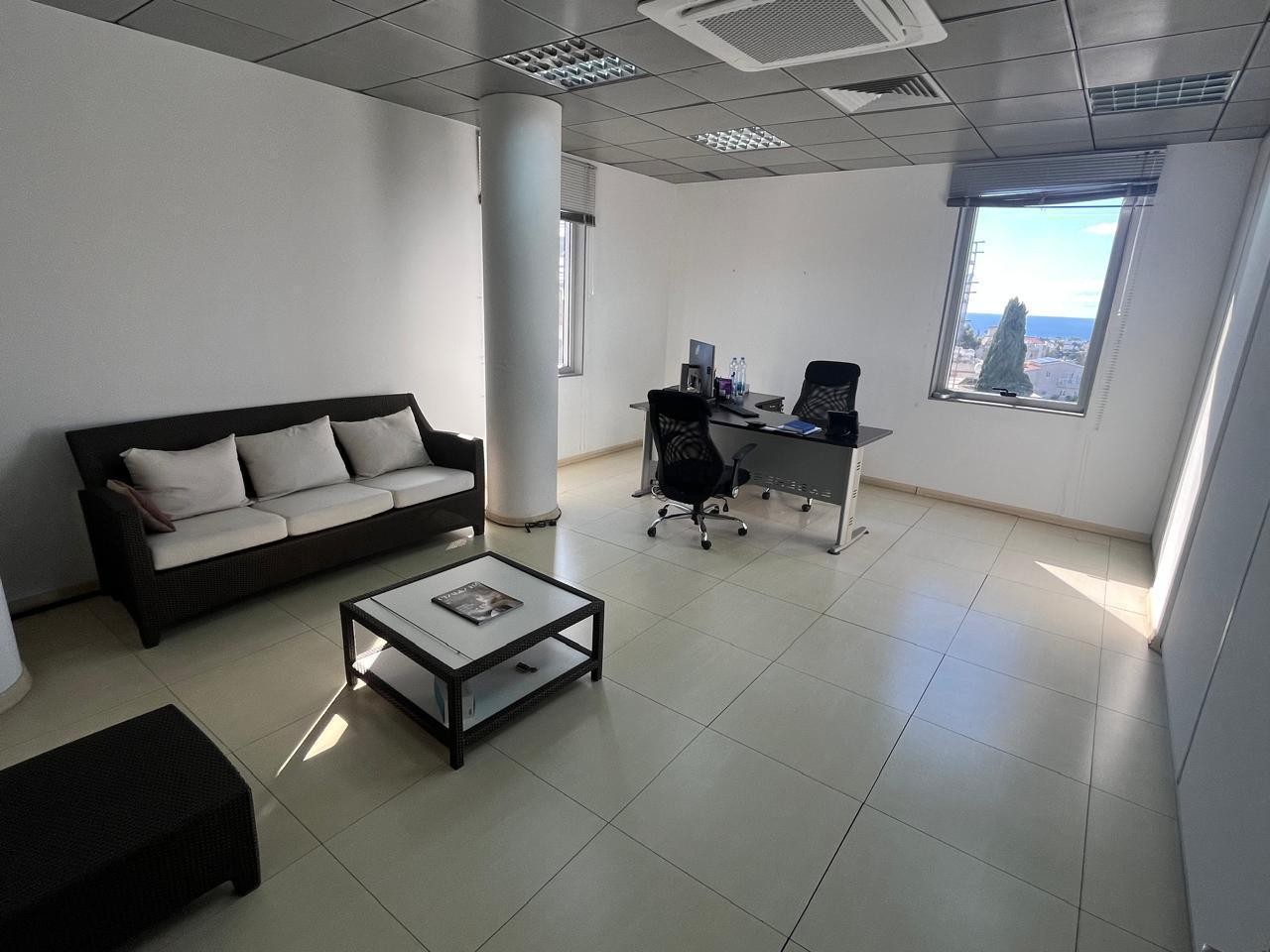 Office for Rent in the Center of Paphos – located on the 3rd floor, this spacious office offers 164 sq.m. of internal area and includes 6 separate rooms, a kitchen room, and 2 toilets. The office is partly furnished (with the possibility to be rented fully furnished upon request). It is equipped with a full VRV air conditioning system for efficient climate control. The property also features sea and city views and includes underground parking. Ideal for companies seeking a well-located and comfortable office space in the heart of Paphos.