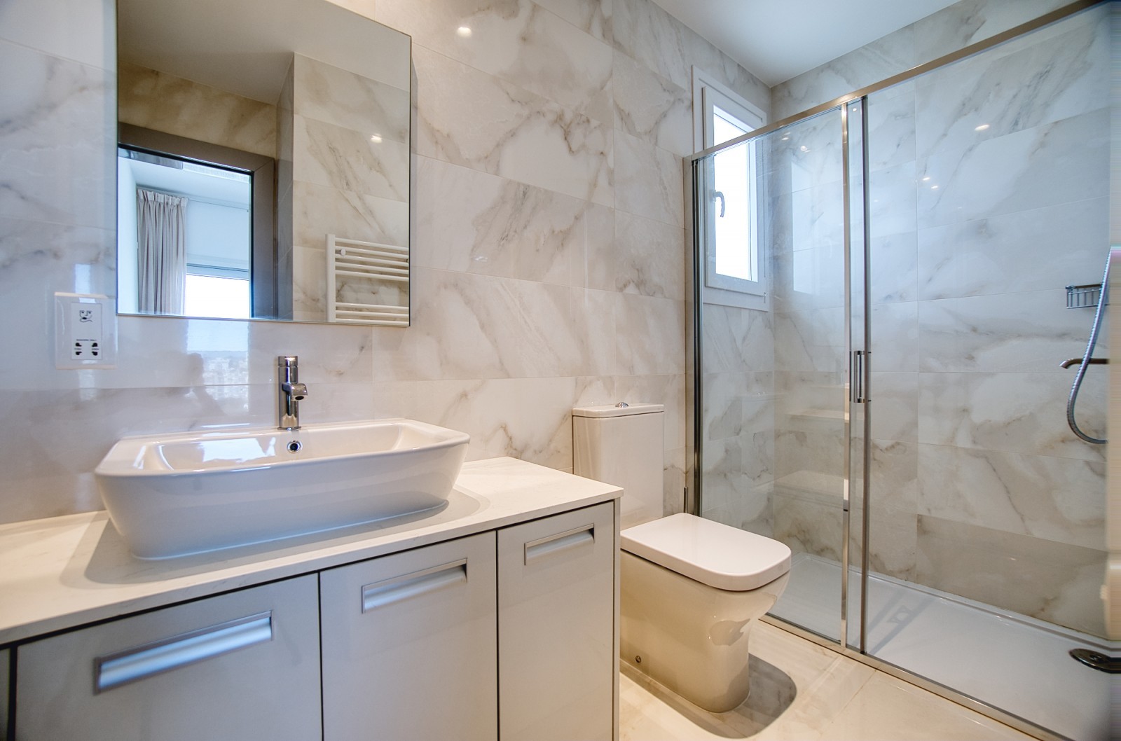 The penthouse is equipped with VRV air conditioning, underfloor heating throughout and a reinforced security door. The layout includes four bathrooms, offering flexibility and comfort for family living or hosting guests.