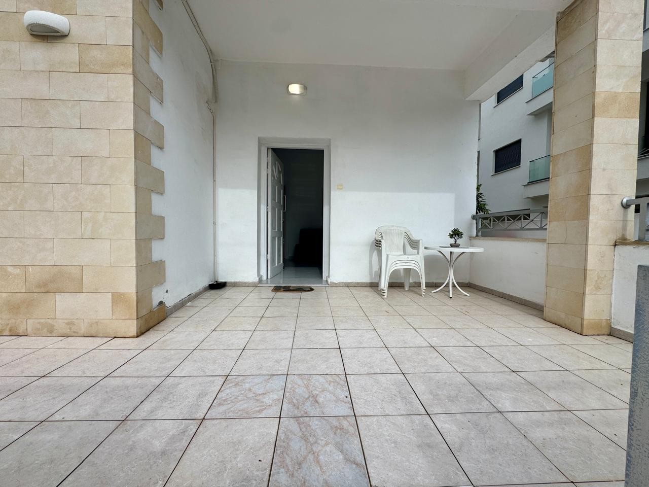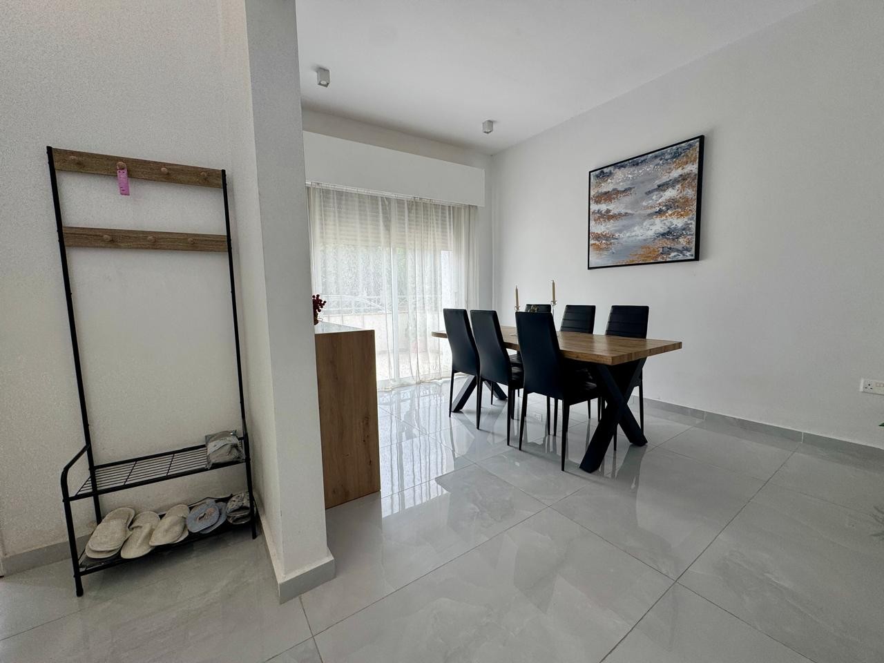 At the entrance, there is a generous area that can be arranged as an office corner or used as a spacious hallway, depending on the tenant’s needs. Shutters are installed on the windows, offering privacy and light control.
