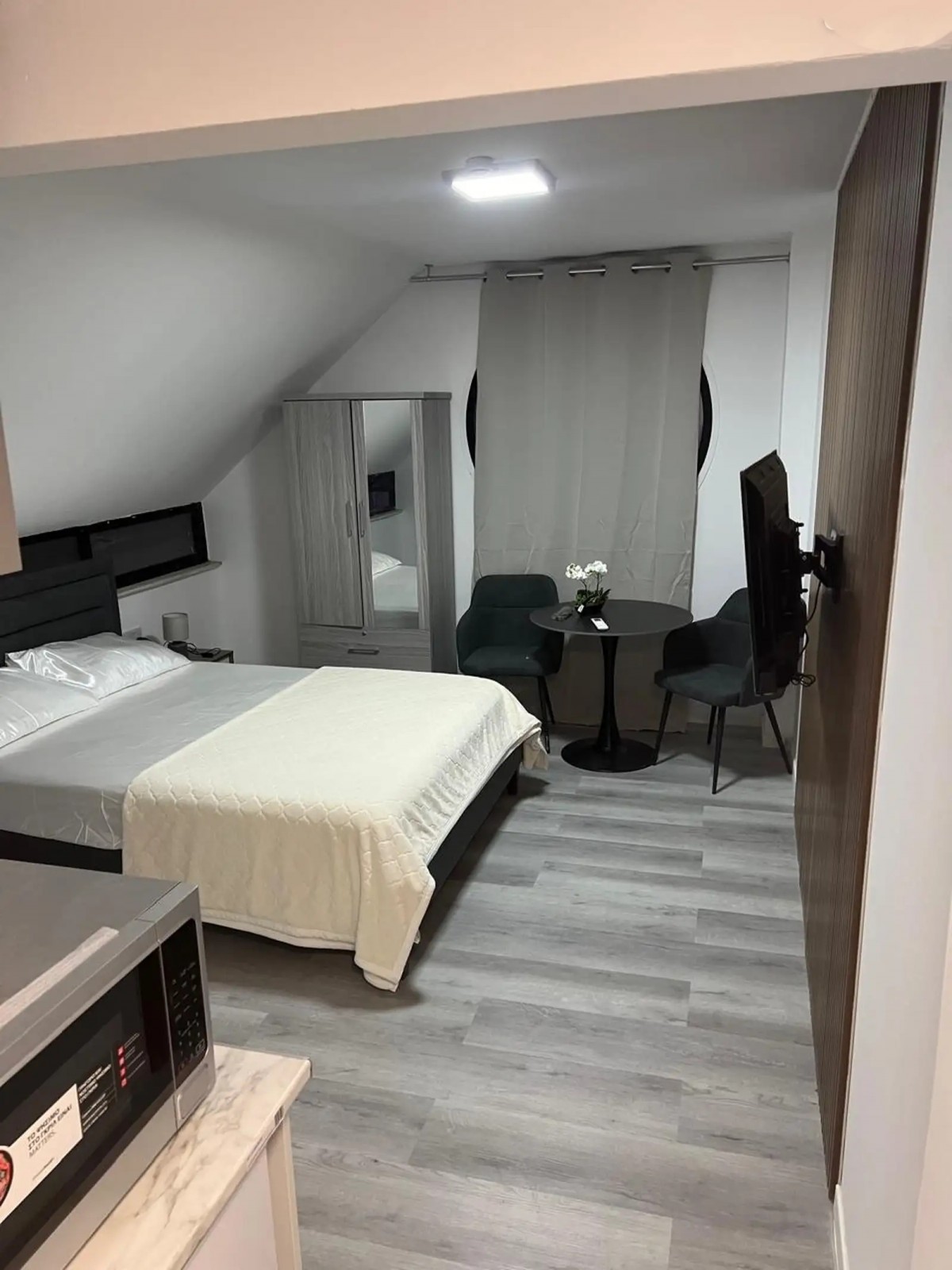 A cozy studio apartment available for rent, perfect for single occupants or couples. The unit comes equipped with air conditioning and includes water, internet, and common area fees in the monthly rent—no extra hidden charges. The apartment offers a comfortable and convenient living space in a well-maintained building. A two-month deposit is required upon move-in.